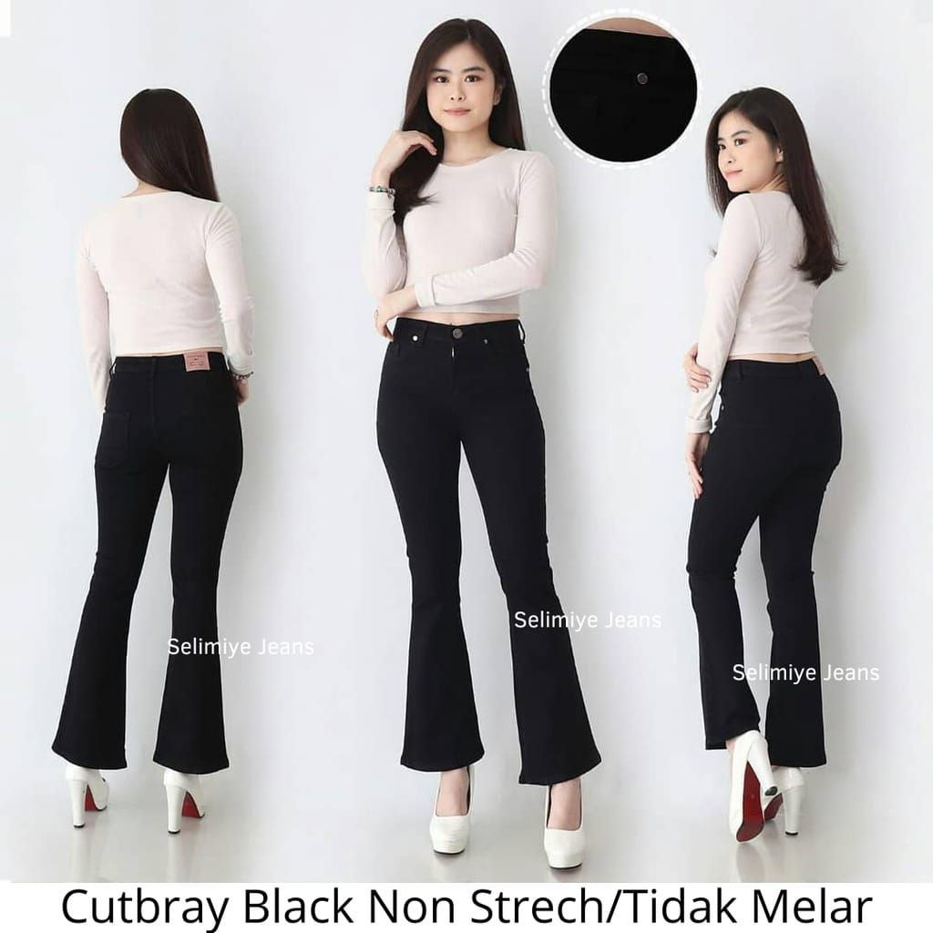 Celana Jeans Highwaist Cutbray Wanita Streath Premium