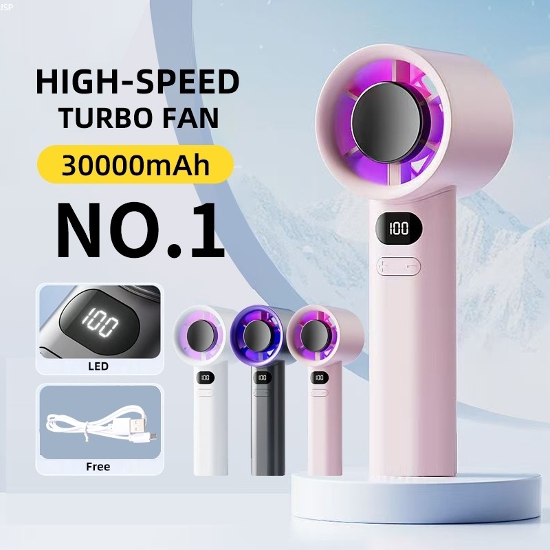 50000mAh Kipas Angin Mini Portable tahan lama 24 jam High speed Turbo USB Tangan 16500RPM Genggam Kipas Strong Wind type C Adjustable 100 Gear Wind LED Digital Display