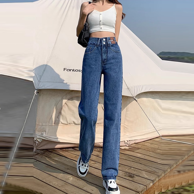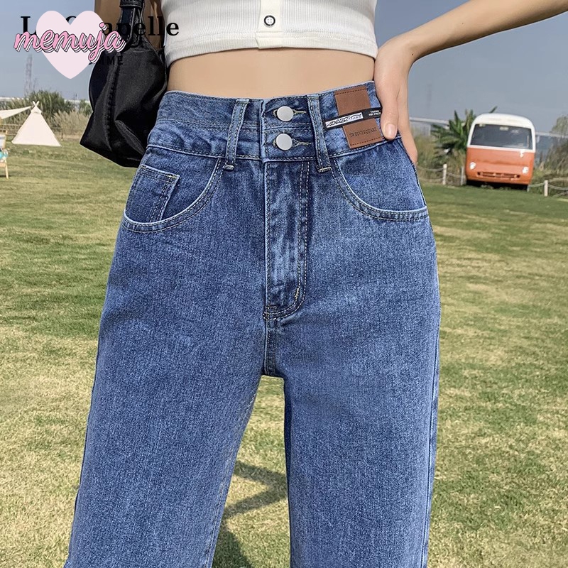 Celana jeans wanita high waist jeans celana kulot wanita celana panjang wanita murah celana panjang wanita santai Kain cuci biru