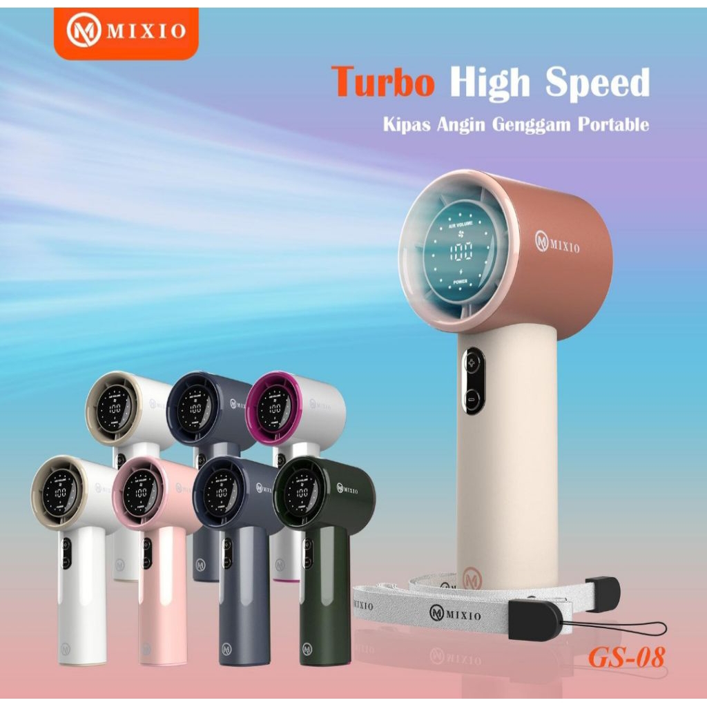 MIXIO Gs 08 High Speed Portable Handheld Fan 4400MAH mini Kipas Strong Wind 100 Gear Wind Speed Kipas Angin Digital Display Adjustable Turbo Kipas Tangan 17000Rpm Gun Colour