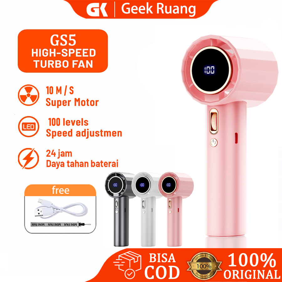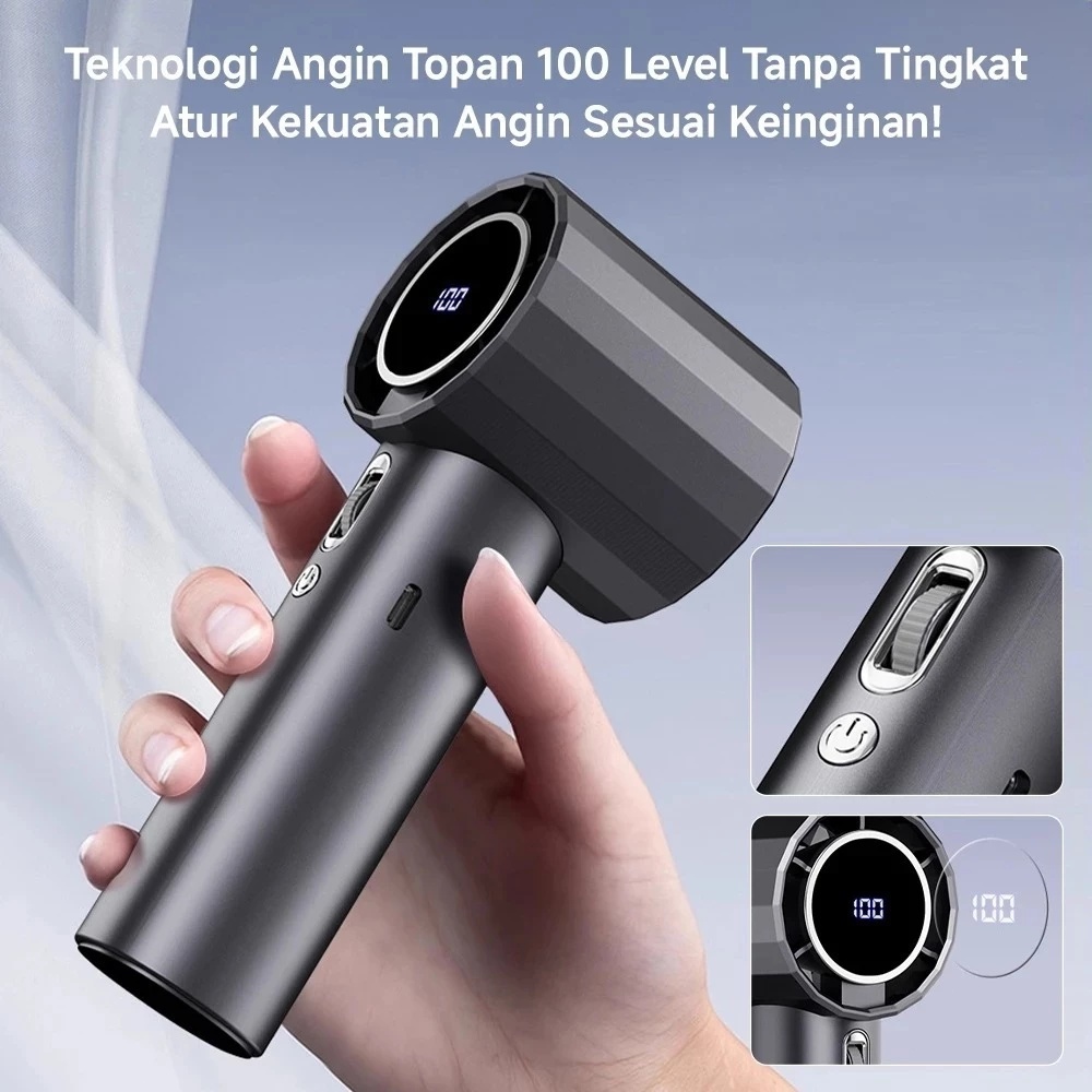 Kipas Angin Portable Mini USB LED Display Portable Handheld Fan Turbo Kipas Tangan Wind 100 Gear