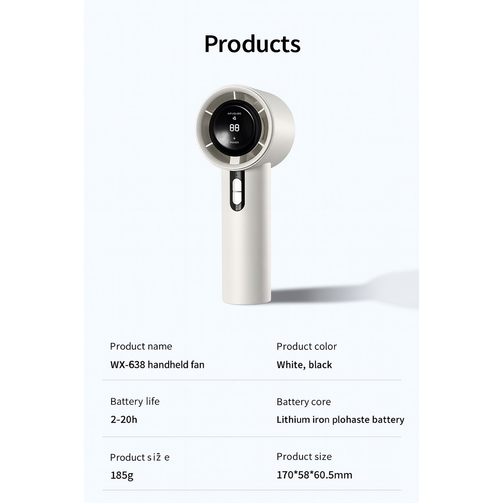 Kipas Angin Mini Portable USB Genggam Layar LED 100 High Speed Handheld Fan WX Series
