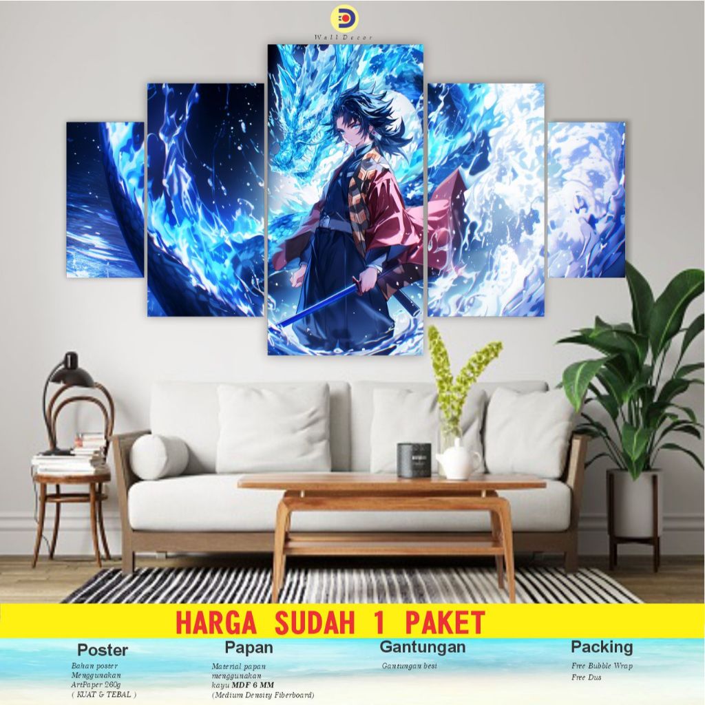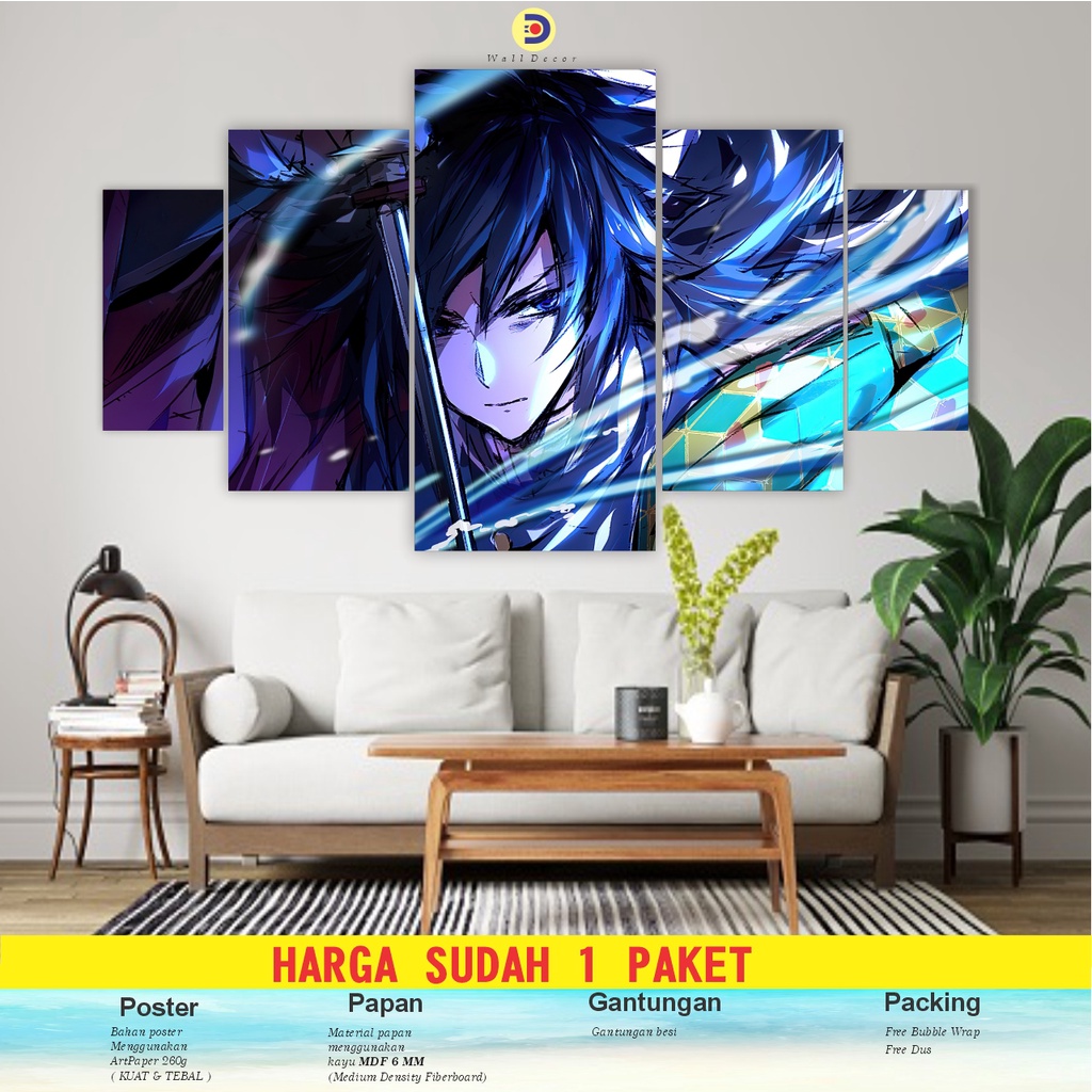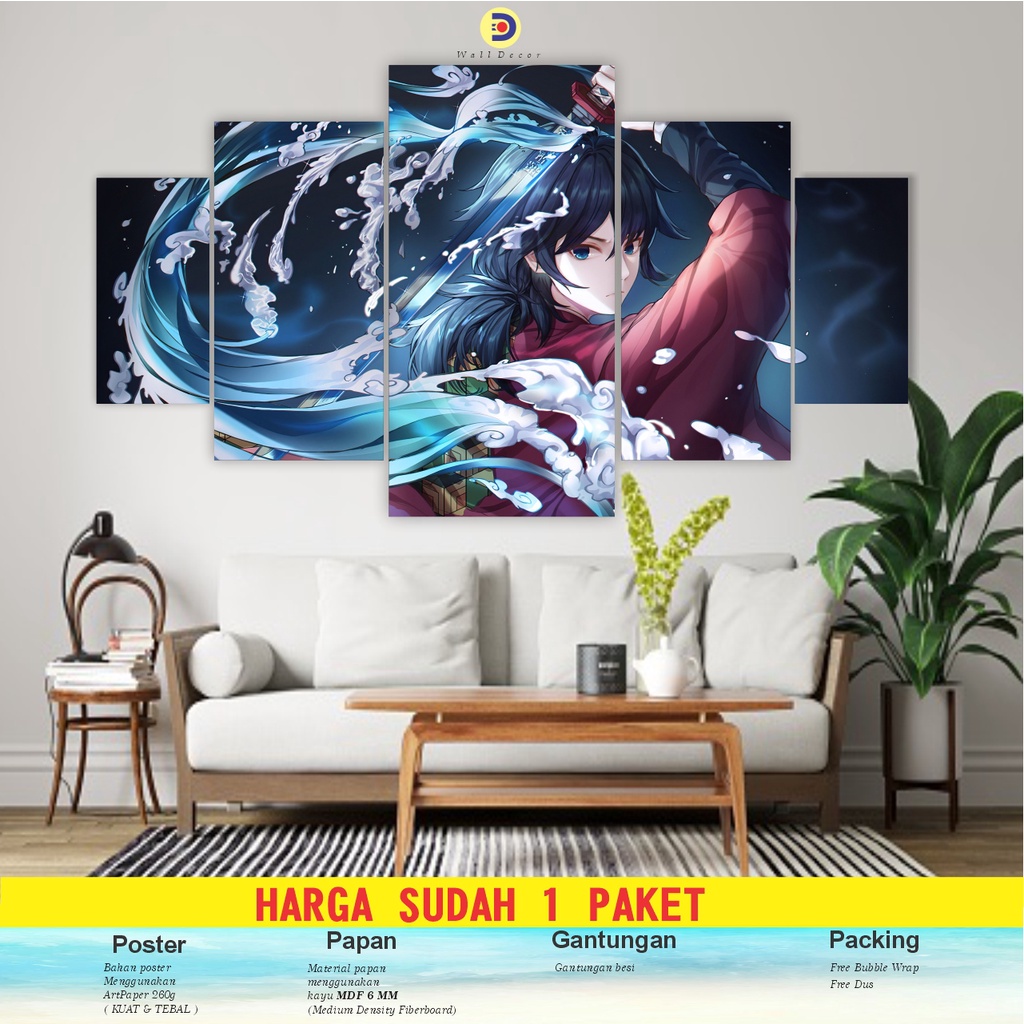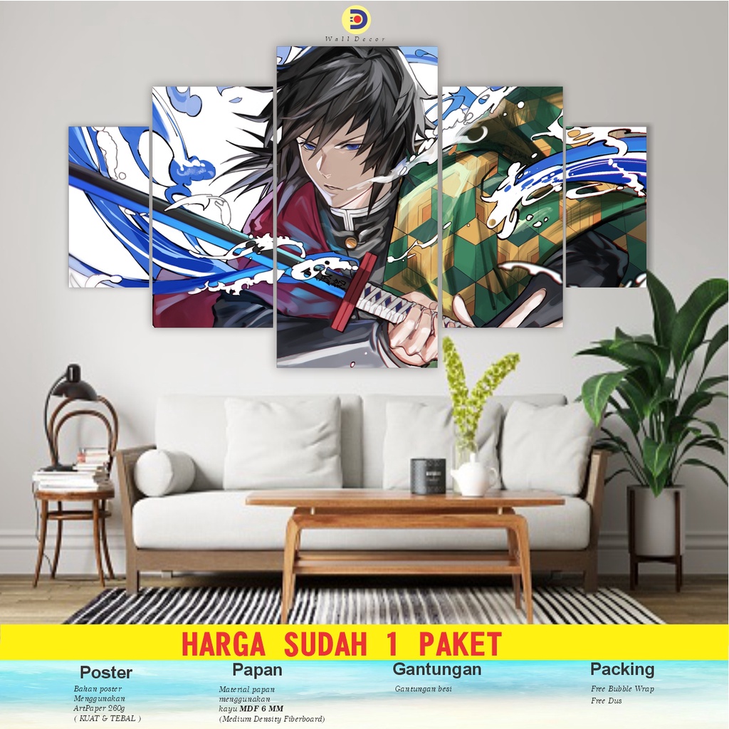 CIMON 1set Poster Kayu Kimetsu No Yaiba Pajangan Hiasan Dinding Giyu Tomioka 5pcs
