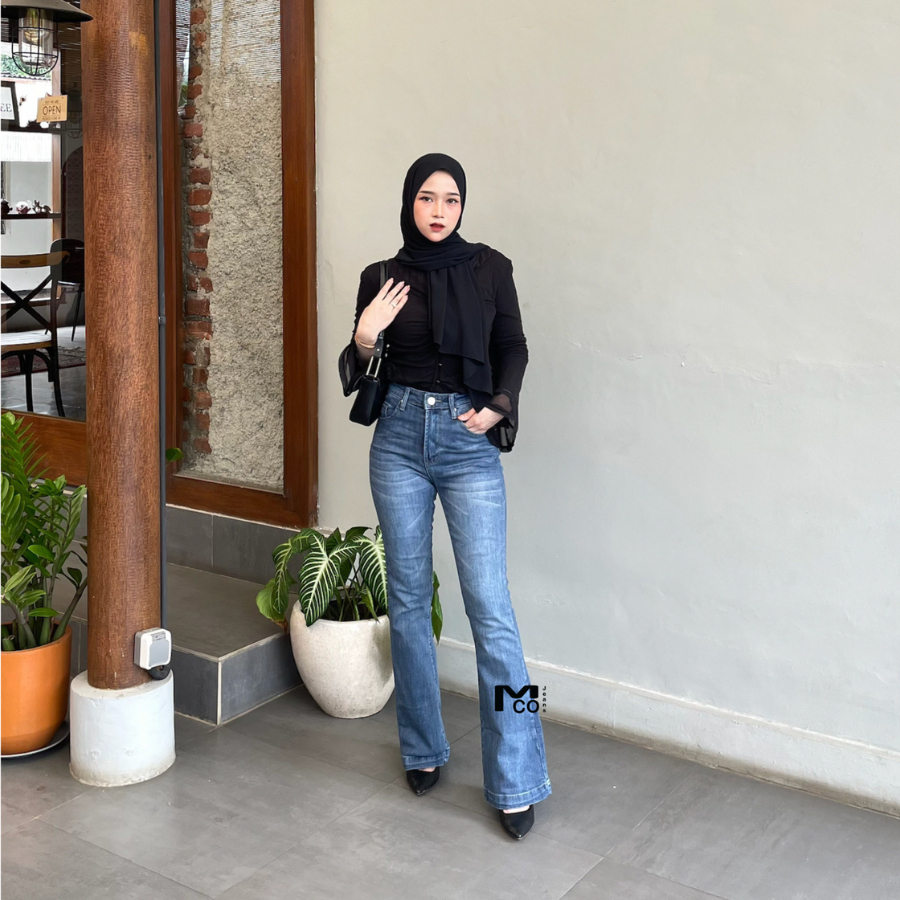 MCOJEANS - Celana Ultra Highwaist Cutbray Snow Abu Polos Panjang Basic Jeans Wanita - Celana Denim Cewek