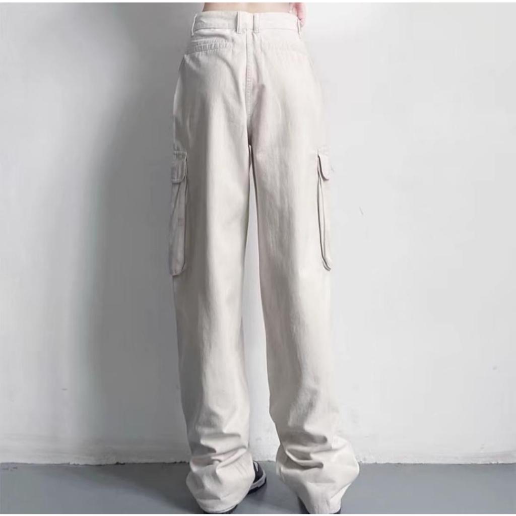 Cargo Denim Pasir Putih Highwaist Loose Celana Jeans Wanita Korea(realpict)