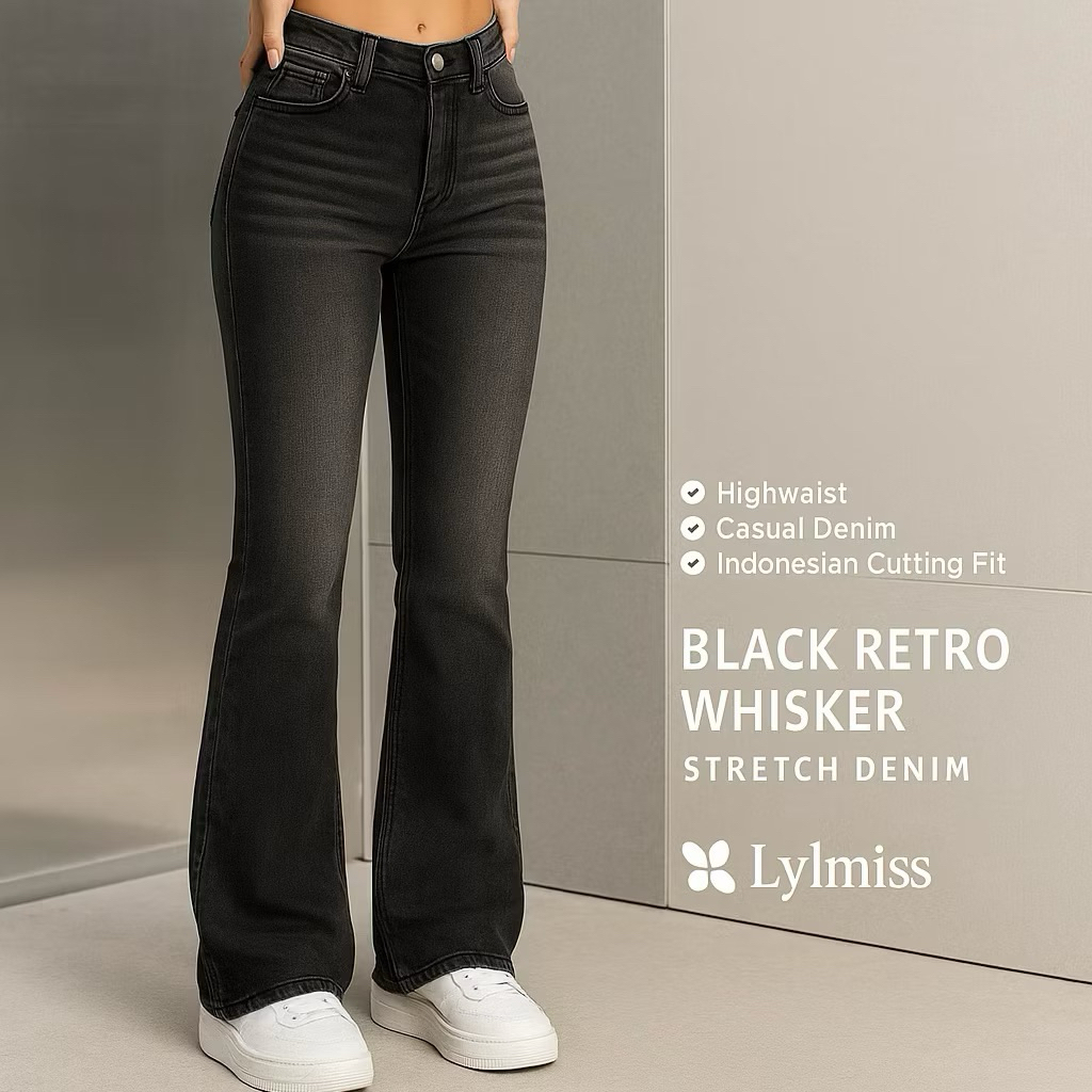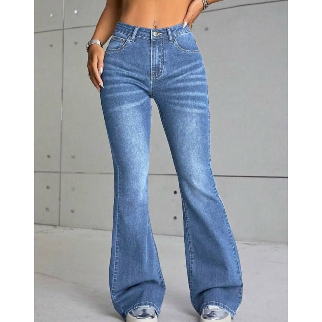 HW Cutbray Jeans Wanita – Retro Flare Stretch Tebal Kekinian | Celana by LylMiss