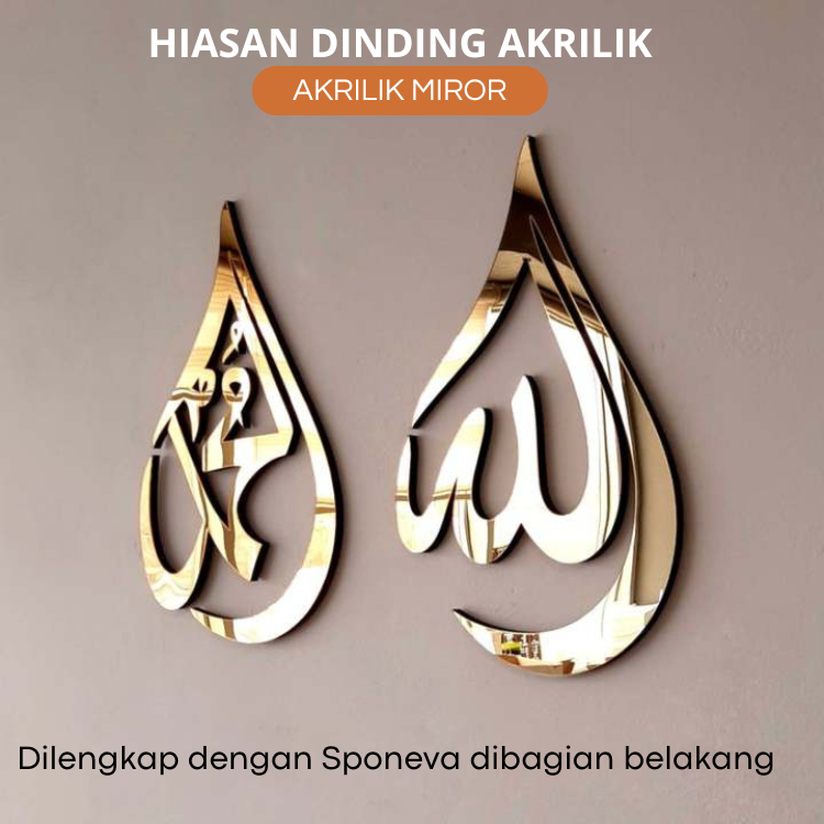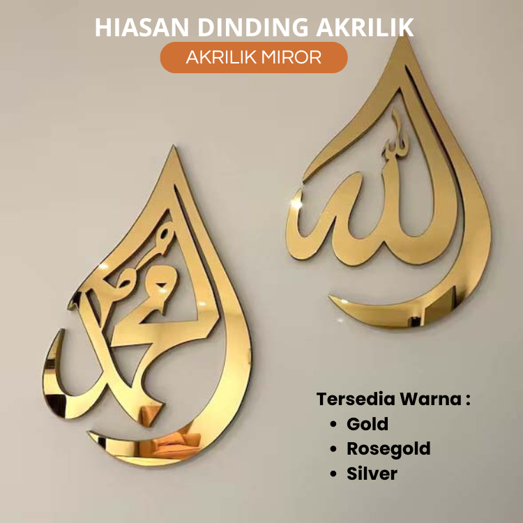 1 Set Kaligrafi Allah Muhammad Bahan Akrilik Laser Cutting Mirror Silver kuningan mengkilap 2MM HIGH QUALITY