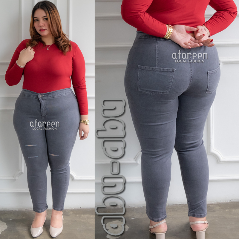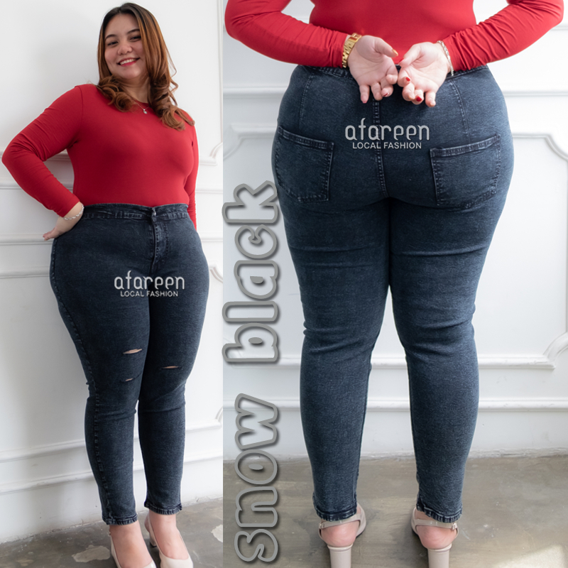 AFAREEN - HW Sobek Jeans Wanita Highwaist Sobek Tembus Super Jumbo Jeans HWS Big Size 35-43