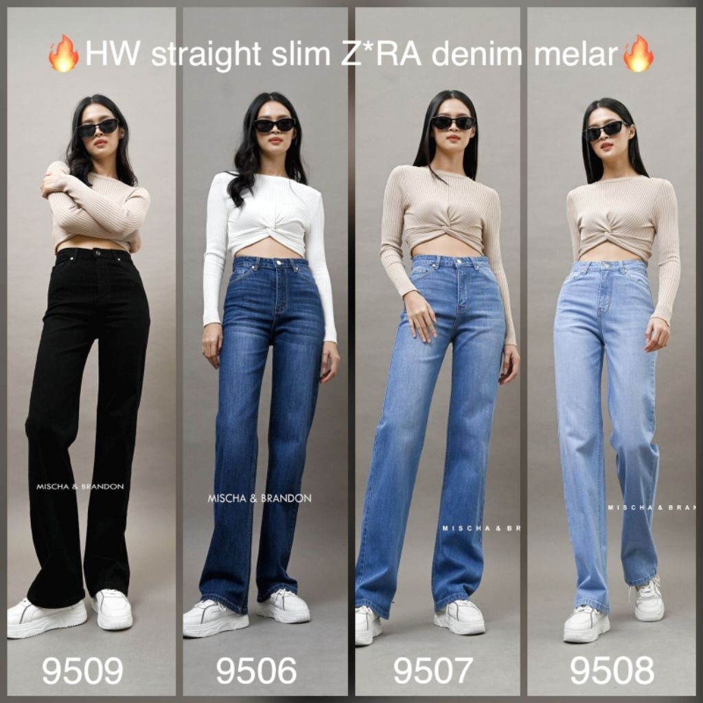 M&B Jeans Celana Jeans Panjang Wanita High Waist Straight Slim Stretch Melar