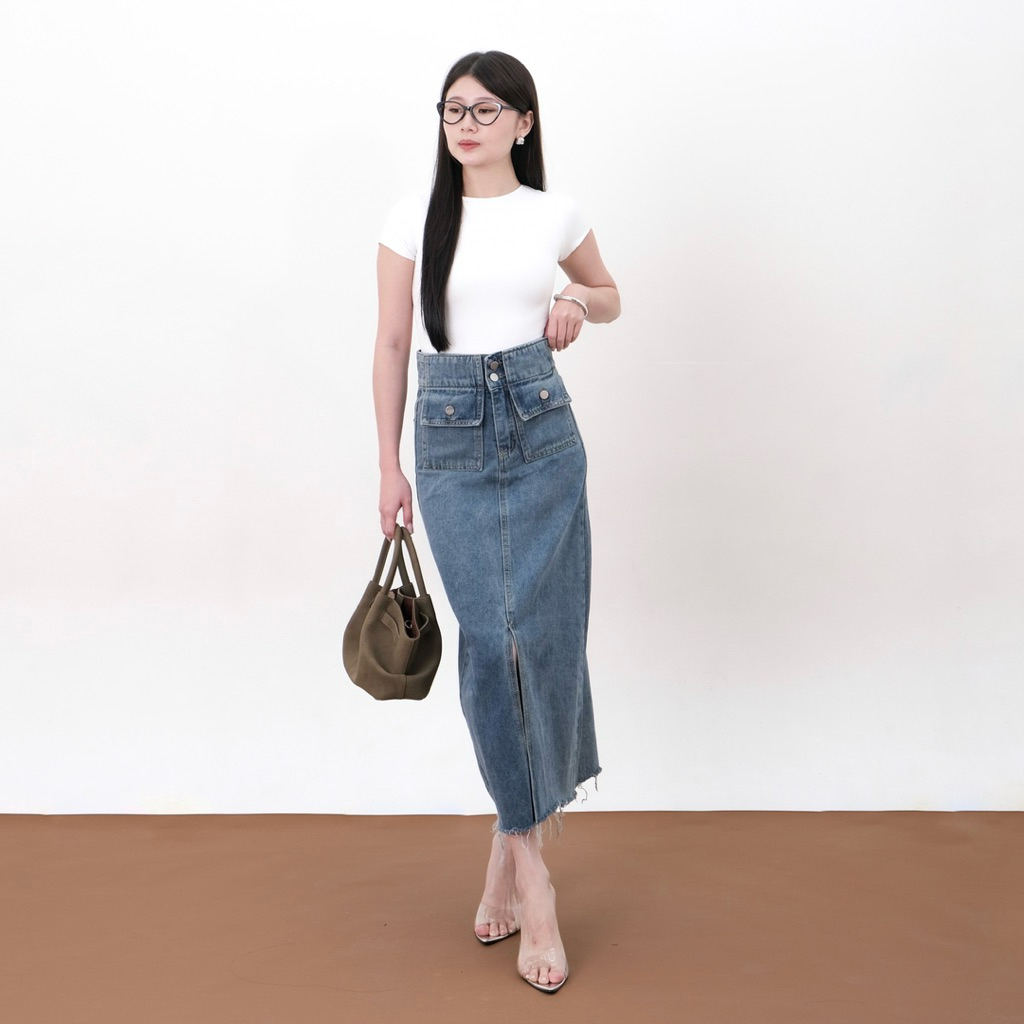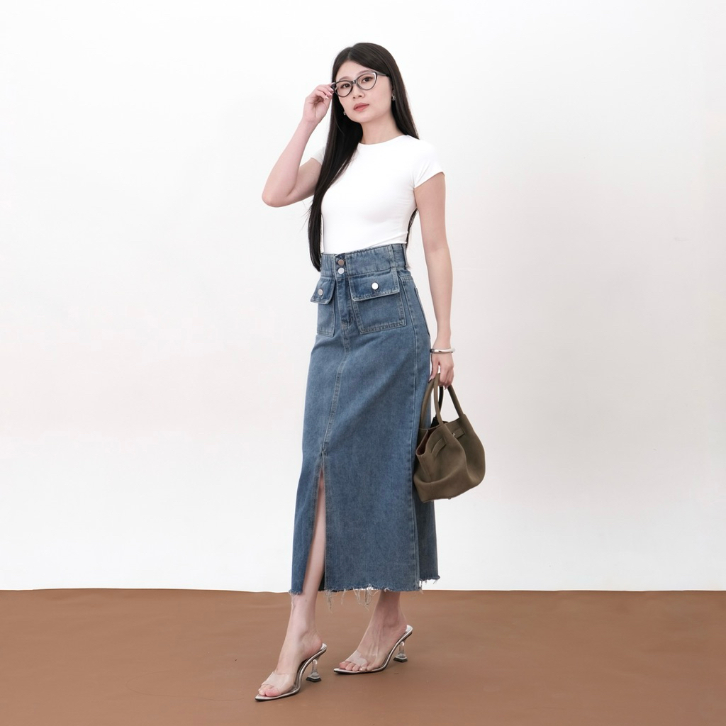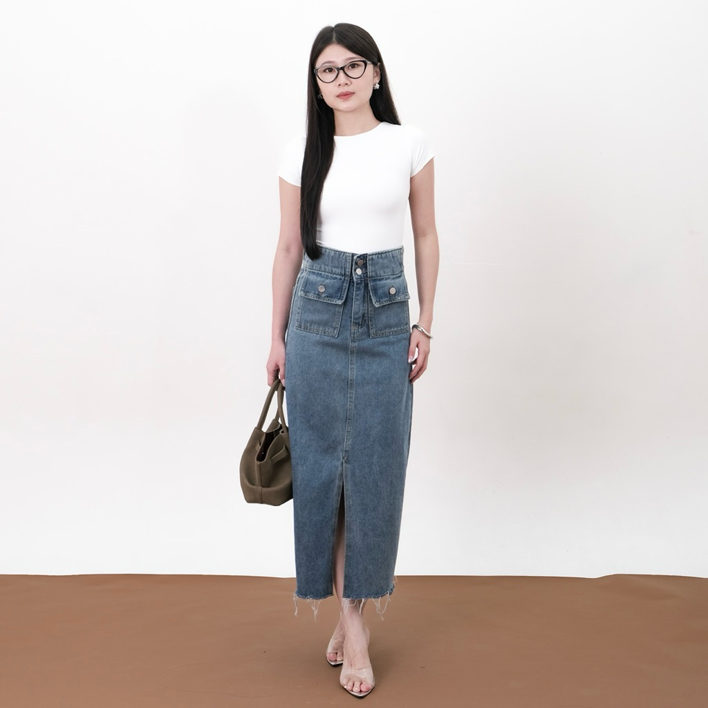 [LUXE.DLABEL] - 255 SKIRT | Rok Jeans Highwaist Wanita Jeans Wanita Polos Ripped Jeans Highwaist Skinny Jeans Highwaist Baggy