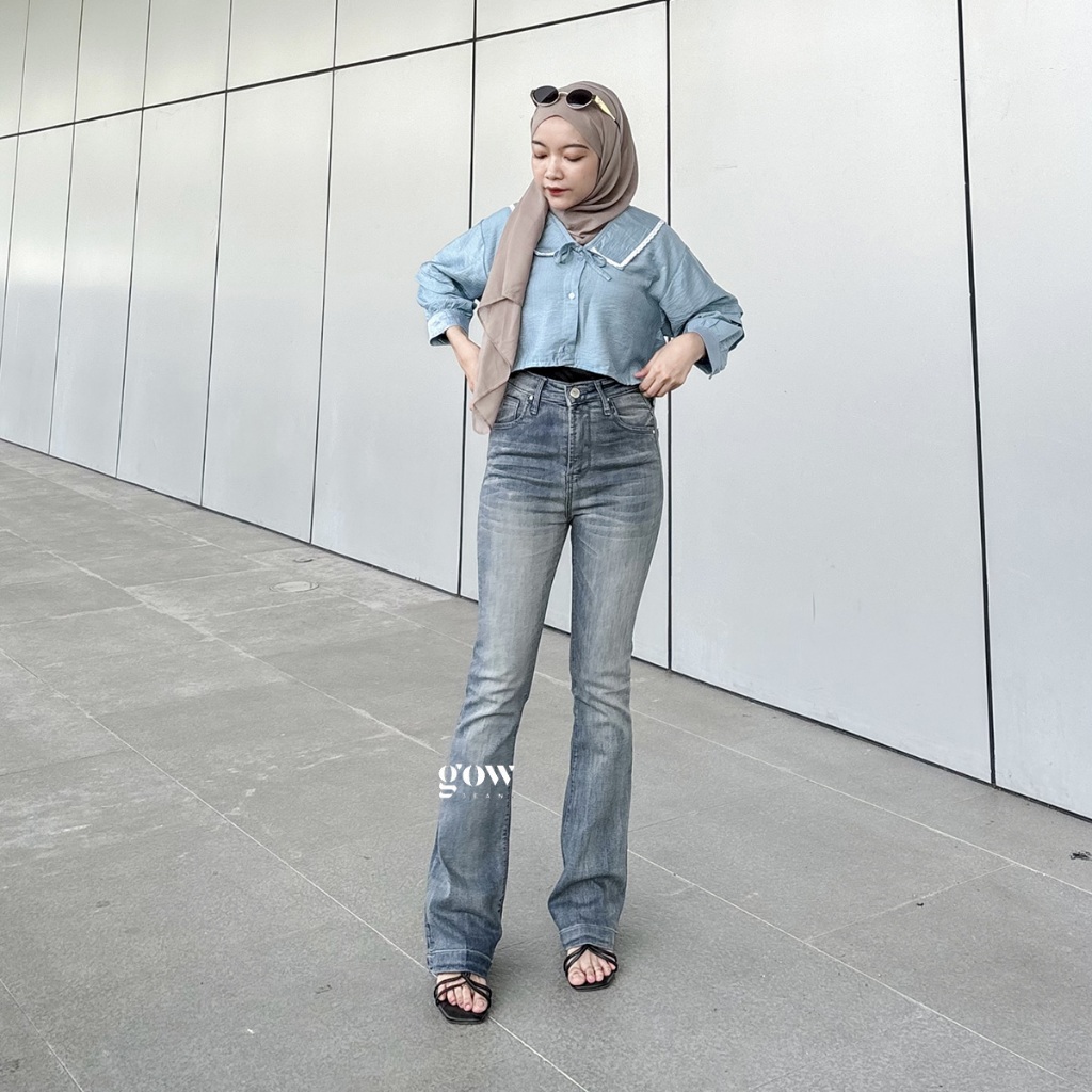 GOWJEANS - Grace Highwaist Cutbray Jeans Stretch Tint Whisker Size 27 - 34 Celana Panjang Wanita