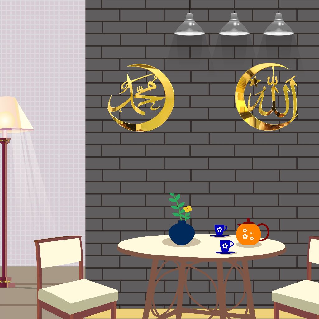 RAC KALIGRAFI HIASAN DINDING ALLAH MUHAMMAD BAHAN AKRILIK 2 PCS SEPASANG