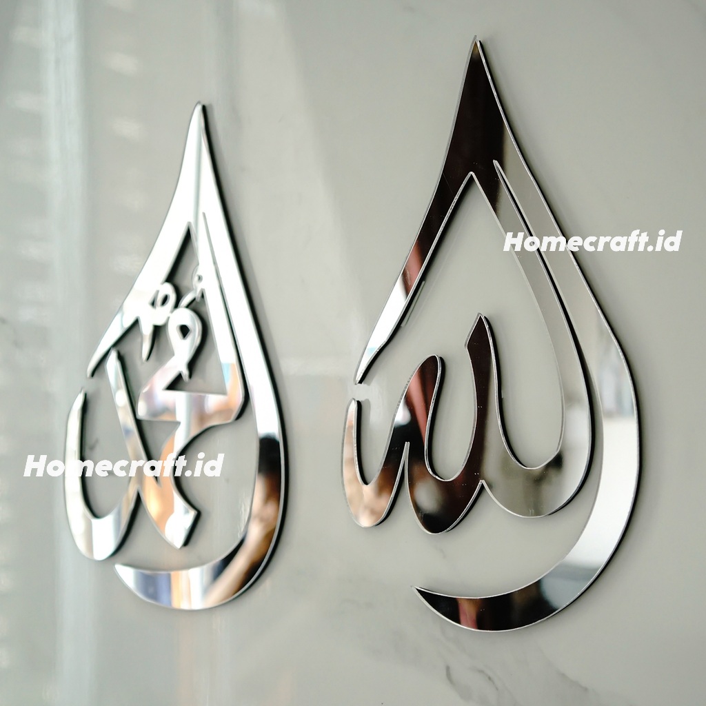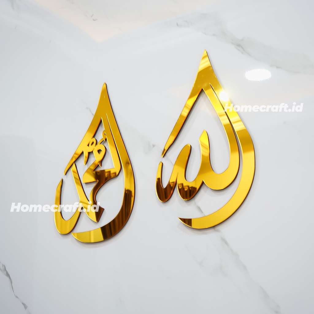 Hiasan Dinding Kaligrafi Mewah 1 set Lafadz Allah Muhammad Akrilik Mirror Tinggi 30cm Dekorasi Dinding Walldecor Dekorasi Rumah Pajangan Ukiran Tempel