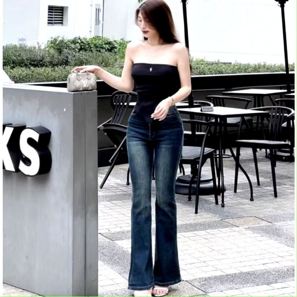 Highwaist Retro Cutbray Jeans Wanita Stretch & Loose