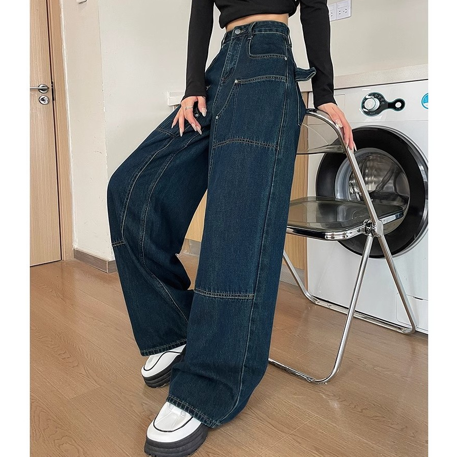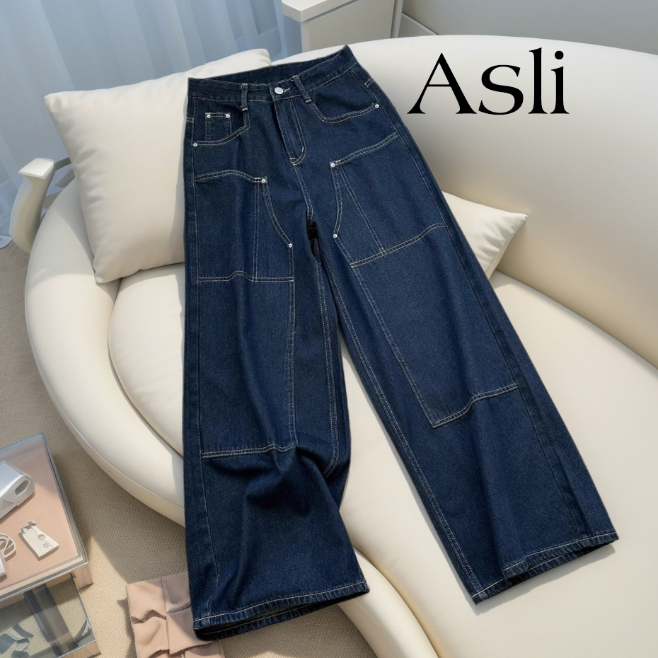 boll.id Celana Jeans Cargo Wanita Bigsize Jumbo Baggy Jeans Cargo Panjang Highwaist Celana Korean Style Celana Kulot Denim Casual