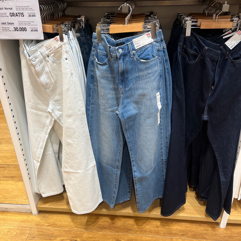 celana jeans lebar lurus (baggy jeans) uniqlo cewek sale