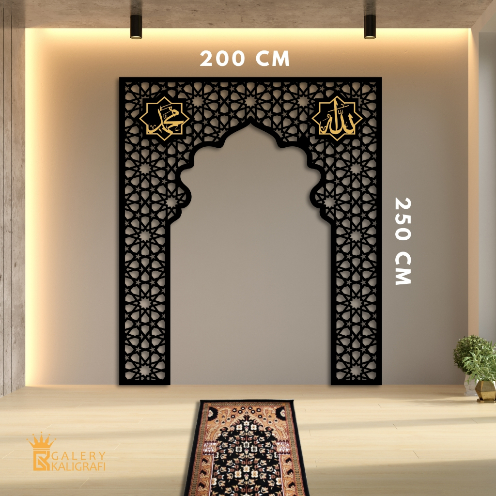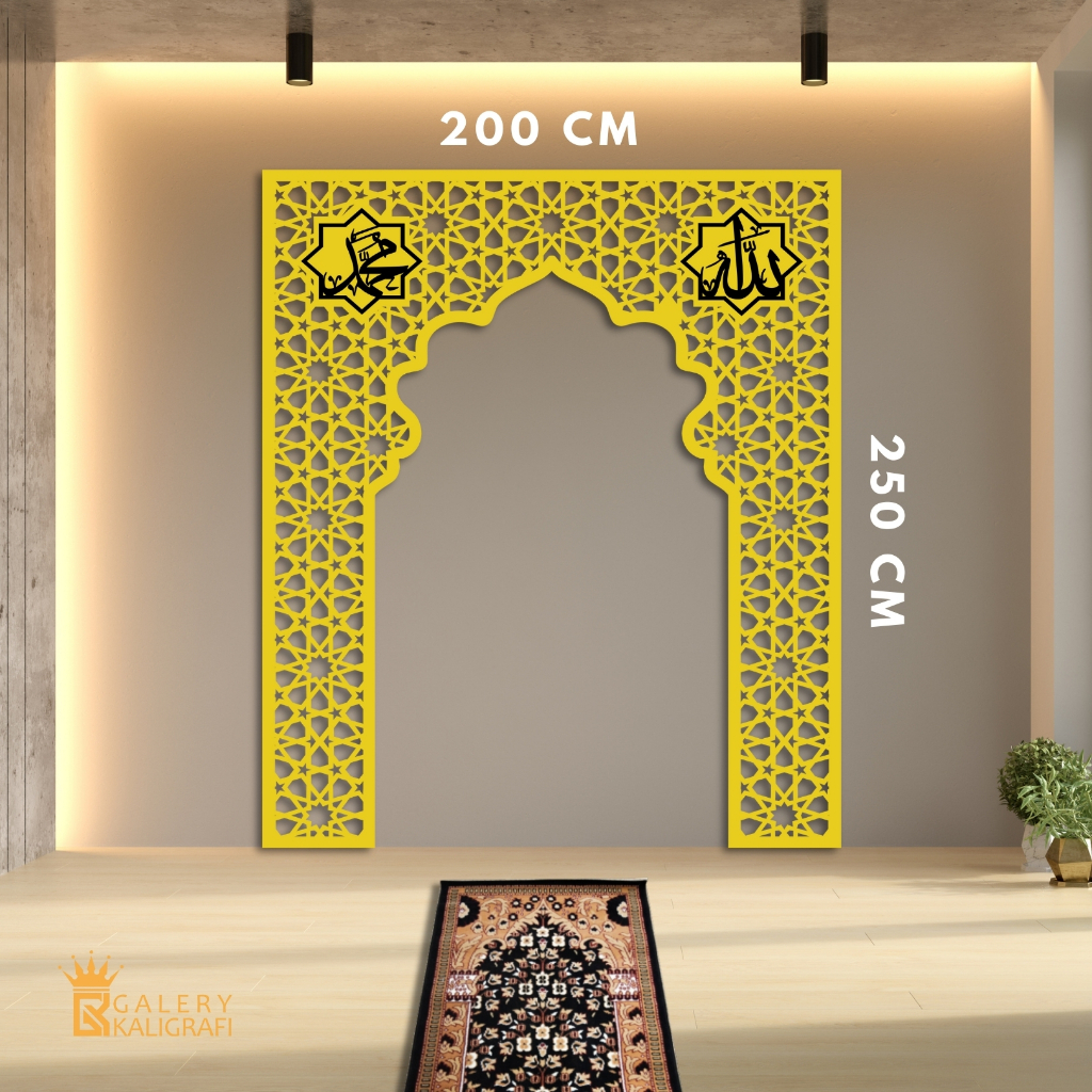 Galerykaligrafi Mihrab Mushola rumah minimalis dekorasi dinding kaligrafi Allah Muhammad Timbul Polywood