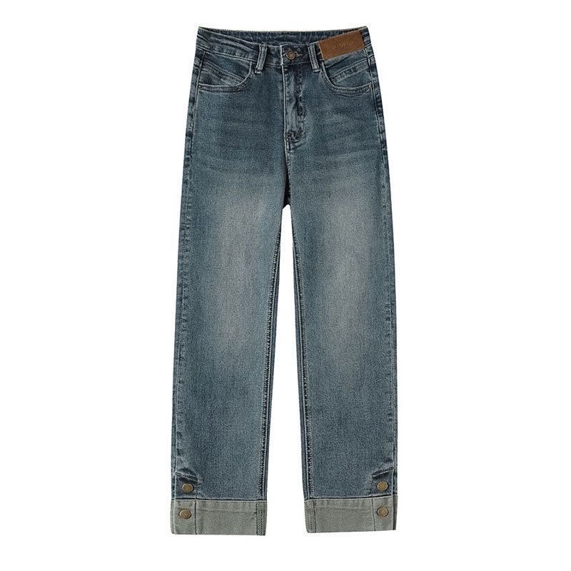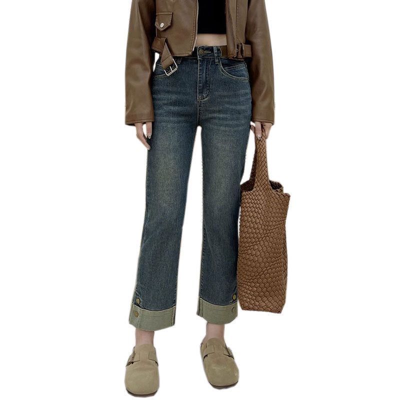 Shenel Celana Jeans High Waist 8034 Jeans Kulot Highwaist Stretch Denim Kaki Lipat Jeans Panjang 7/8