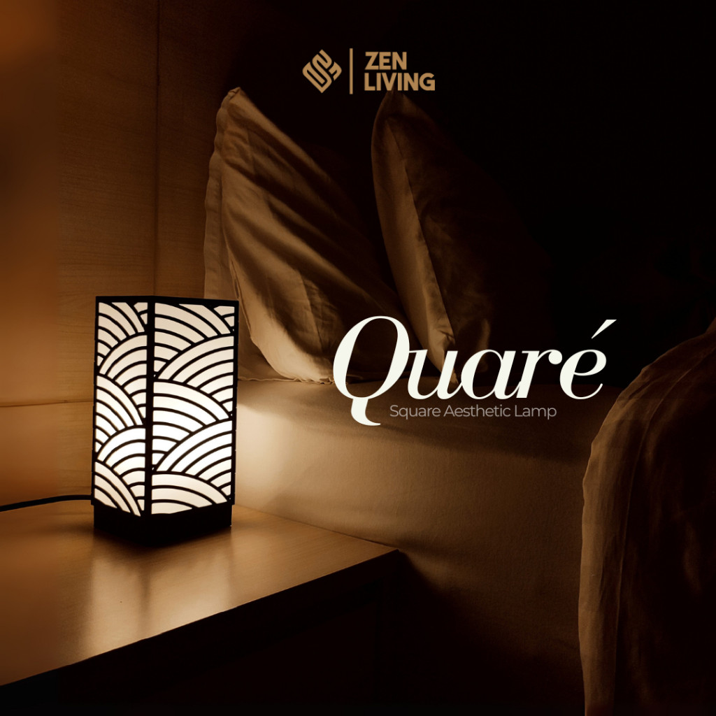 Lampu Aesthetic Quare Meja Kamar Tidur Elegan Minimalis Motif Oriental Bohlam LED Fitting E27