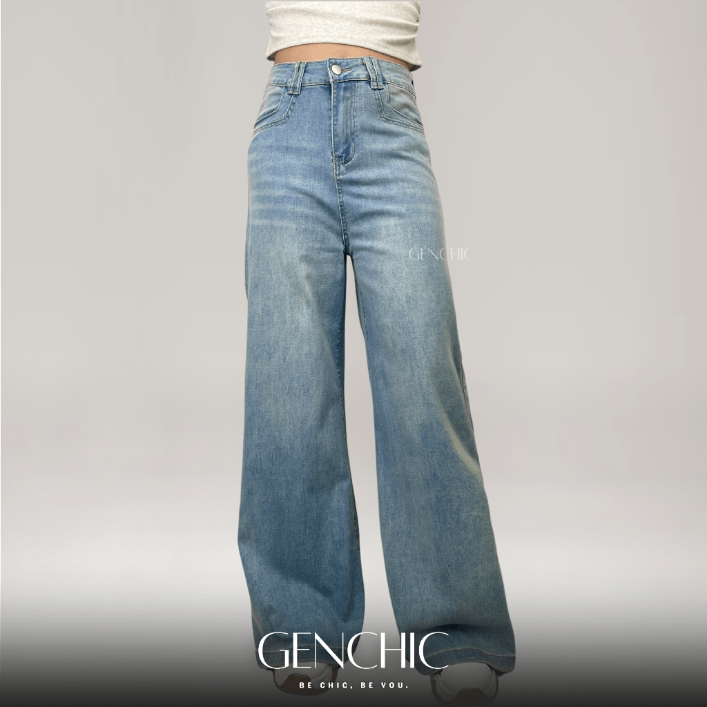 GENCHIC - High Waist Wide Leg Loose Jeans Oversized Washed Culotte Jeans | Celana Jeans Kulot Wanita