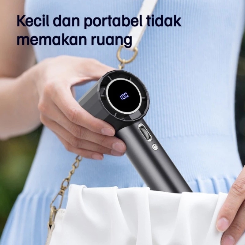 Kipas Angin Turbo Portable Digital Display Adjustable Handheld USB Rechargeable Mini Fan High Speed Mini Artefak Pendingin