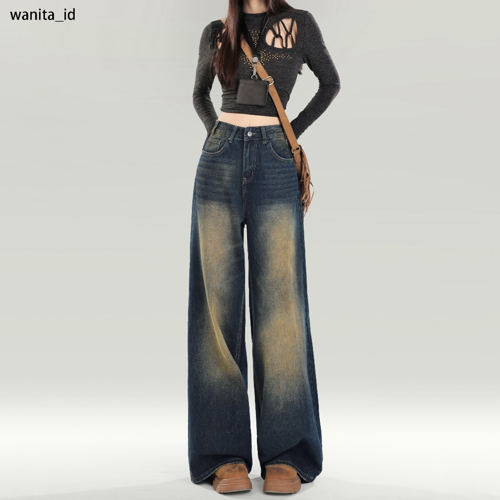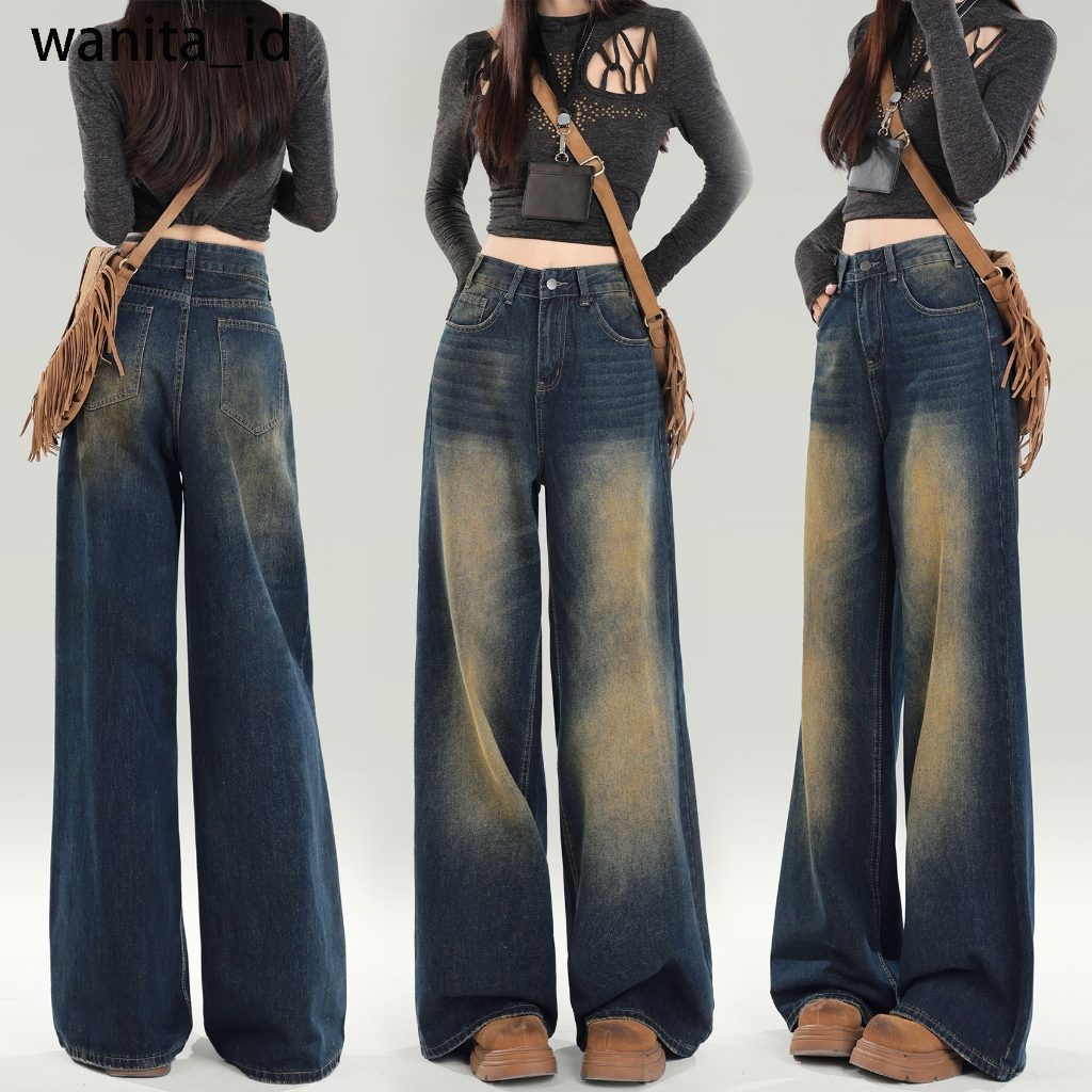 Vintage Jeans Wanita Celana Kulot / Straight Jeans Wanita Celana Baggy Pants Highwaist