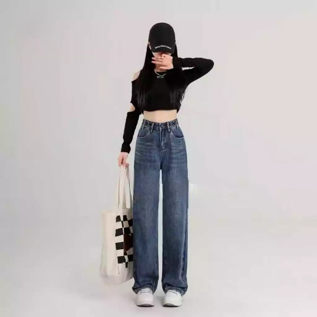 Celana Panjang Wanita Loose High Waist Jeans Premium - Korean Stayle Jeans Baggy Loose Oversize