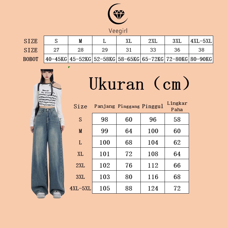 Veegirl 【Paling Laku】 Celana Jeans Wanita Jeans Highwaist Panjang Jumbo 5XL Celana Jeans Pinggang Karet Belakang Korean Style