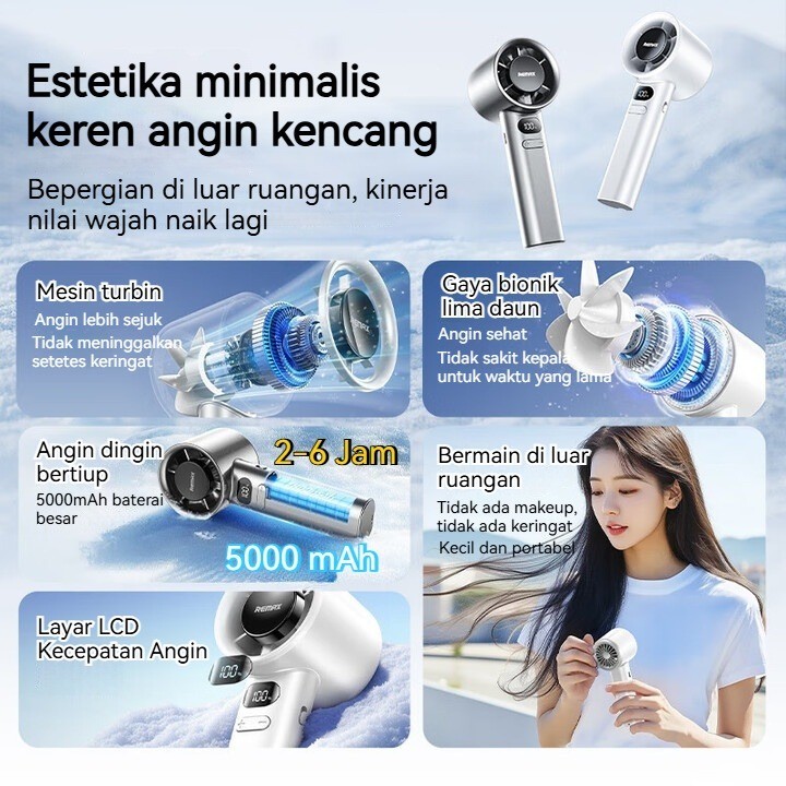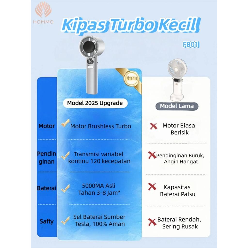 CREZONA Kipas Angin Genggam Portable USB Mini Fan Stylish Turbo 120 Level Layar LED Baterai Tahan Lama FB01 Kipas Turbo Kecil Angin Super Kencang Senyap untuk Aktivitas door dan Indoor FB01
