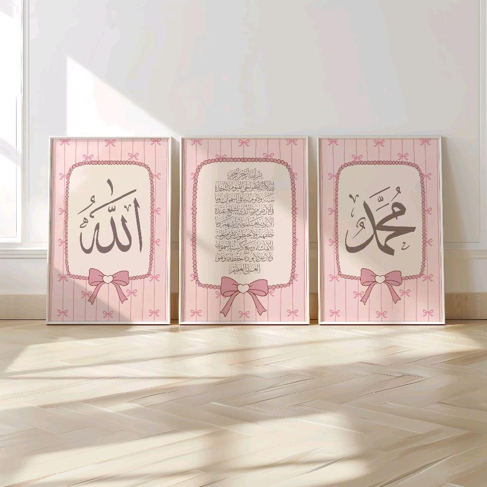 Hiasan Dinding Islami Kaligrafi ALLAHMUHAMMADAYAT KURSI Aesthetic Pink CoquetteHiasan Dinding Dekorasi Kamar Cewek Lucu Kawaii Hiasan Dinding Meja Poster Pastel Abstrak Wall Decor Frame