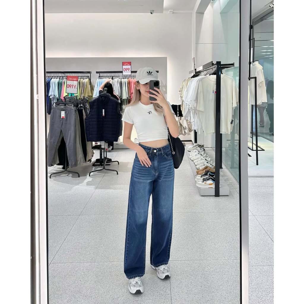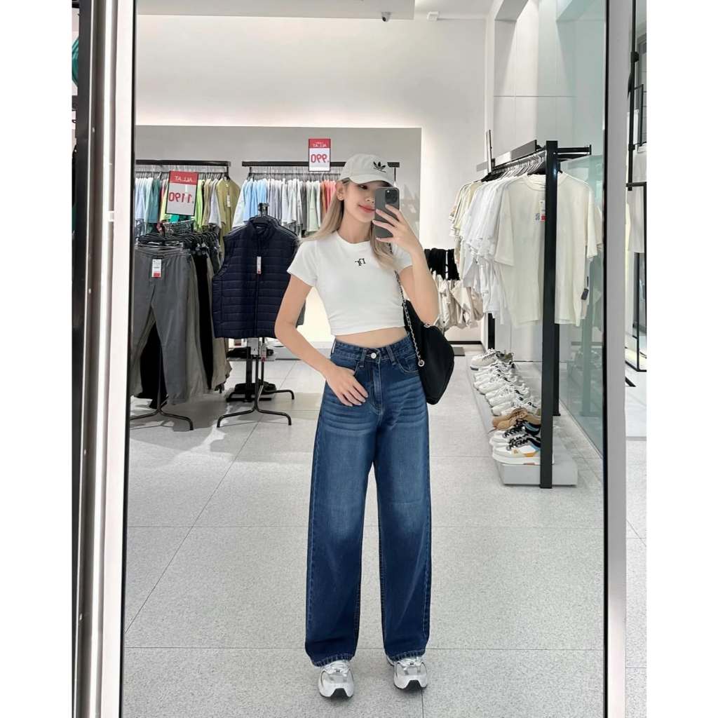 Celana jeans high waist wanita korean style Jeans baggy pants Serbaguna Kasual Biru Retro