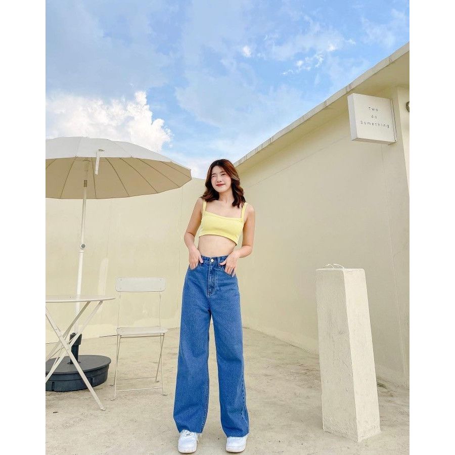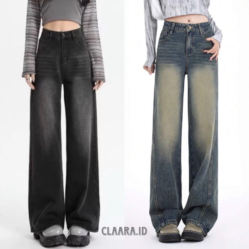 Celana Hitam Retro Highwaist Celana Jeans Wanita Loose Kekinian