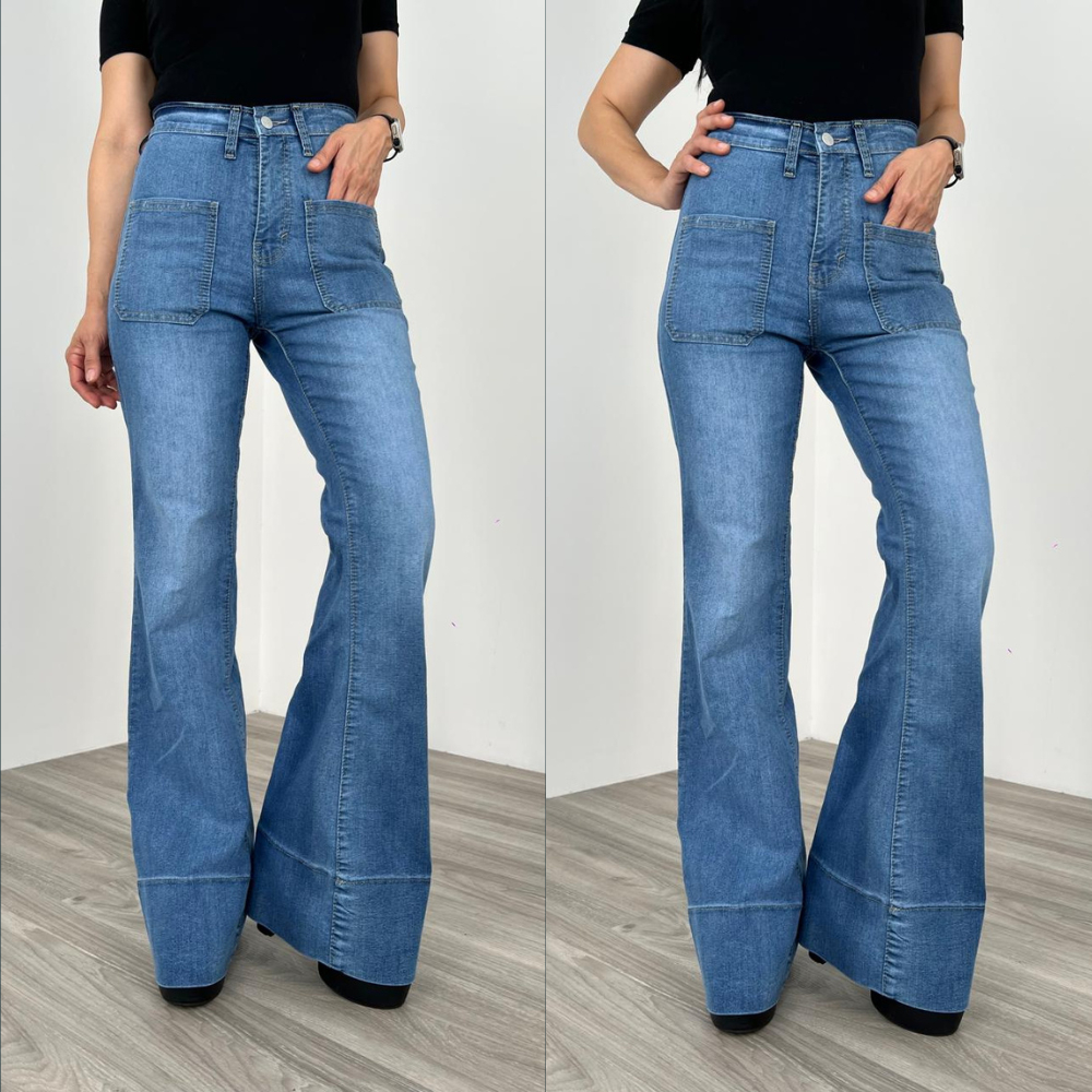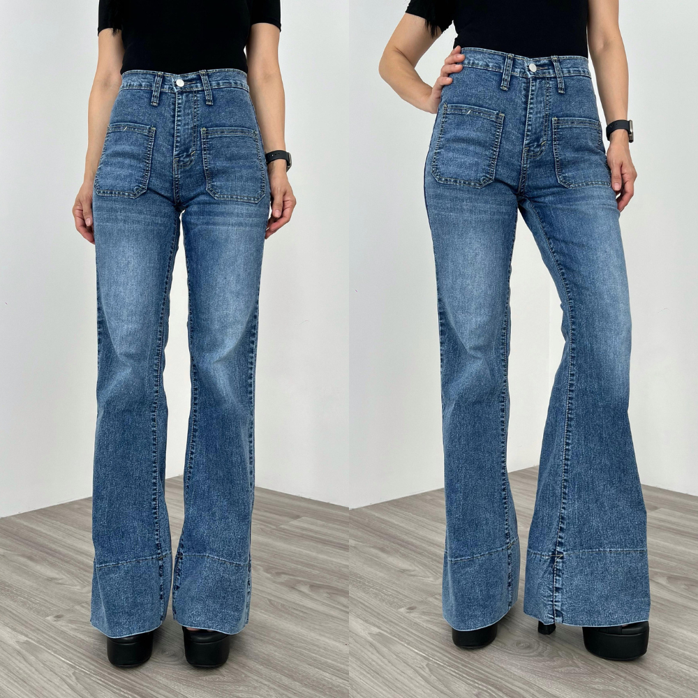 LA GRACE - Nara High Waist Cutbray Jeans Celana Flare panjang Melar Wanita Stretch [90-91-92-108]