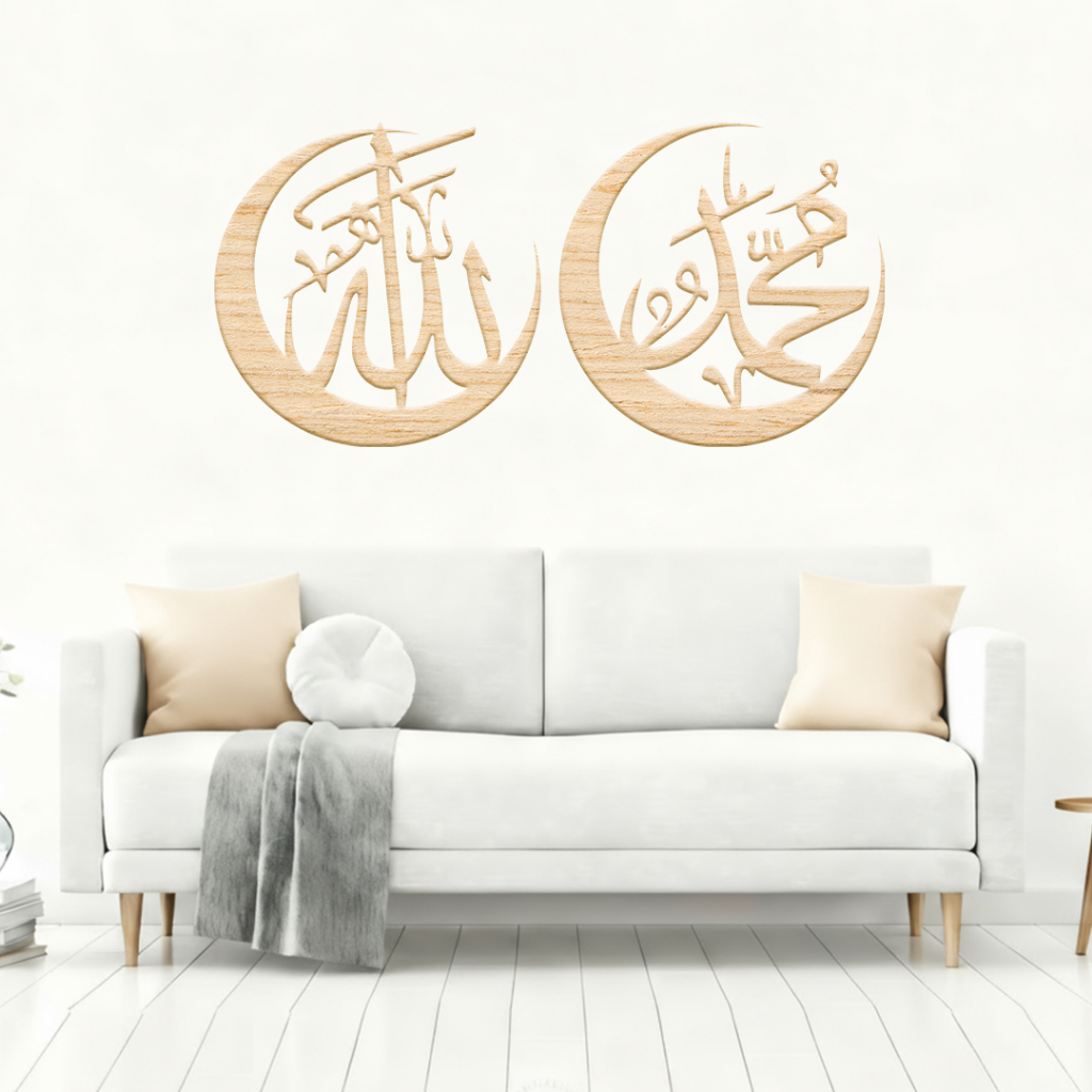 Kaligrafi Allah Muhammad30cm 40cm Hiasan Dinding Laser Cutting Bulat Kayu