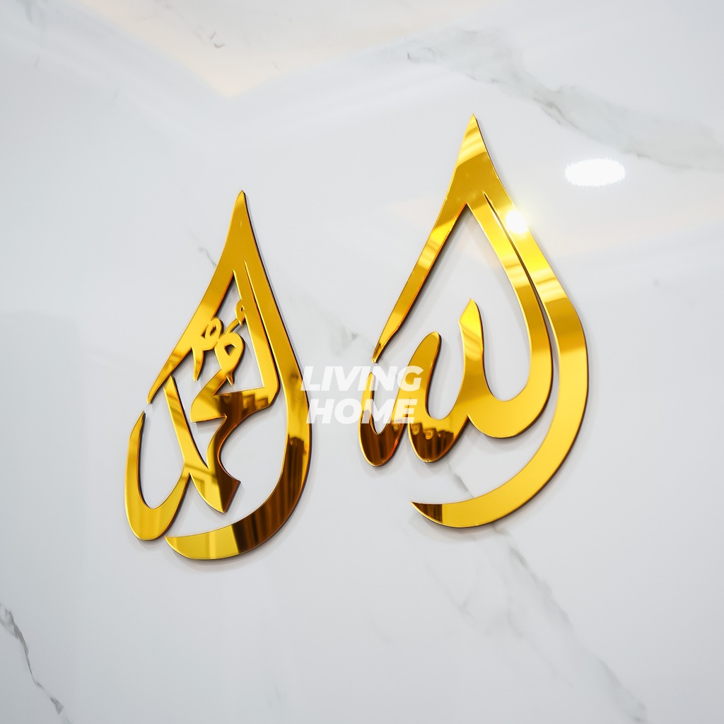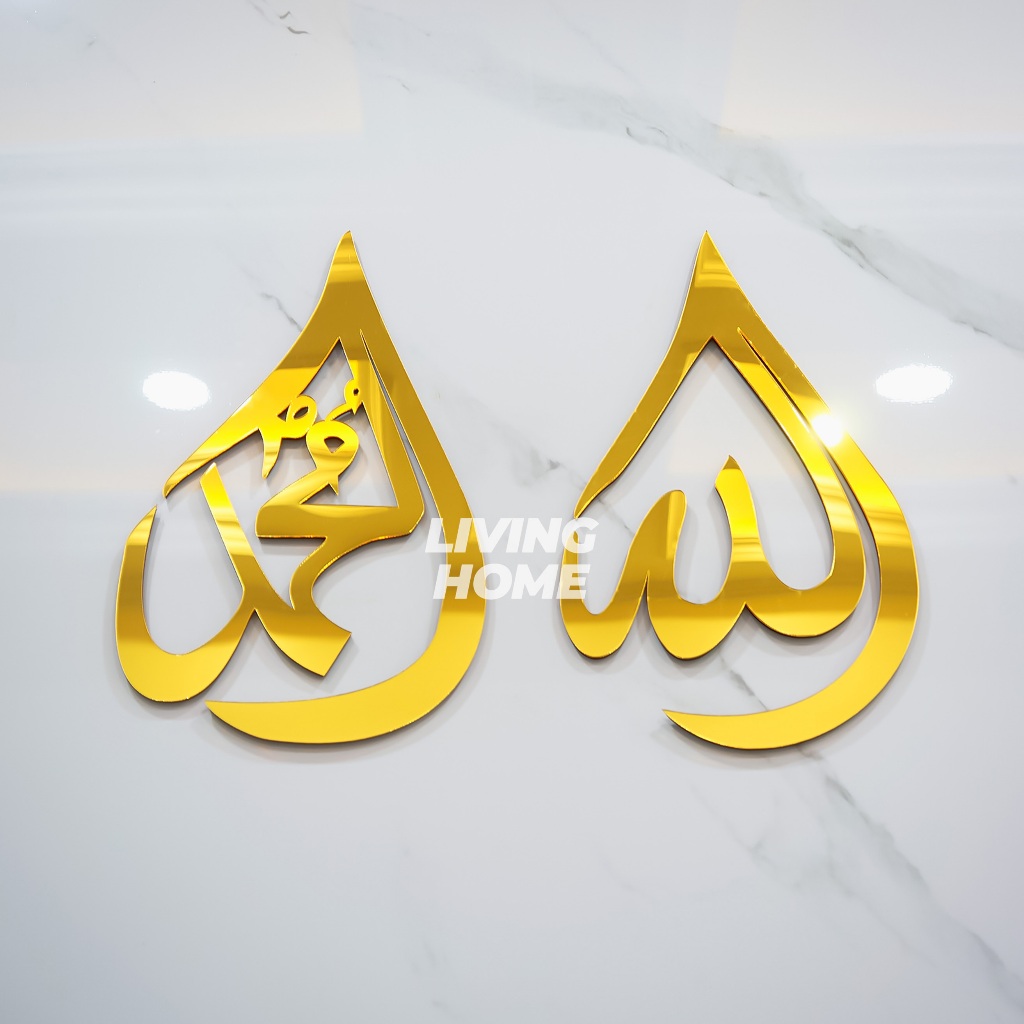 Hiasan Dinding Kaligrafi Mewah 1 set Lafadz Allah Muhammad Akrilik Mirror Tinggi 30cm Dekorasi Dinding Walldecor Dekorasi Rumah Pajangan Estetik