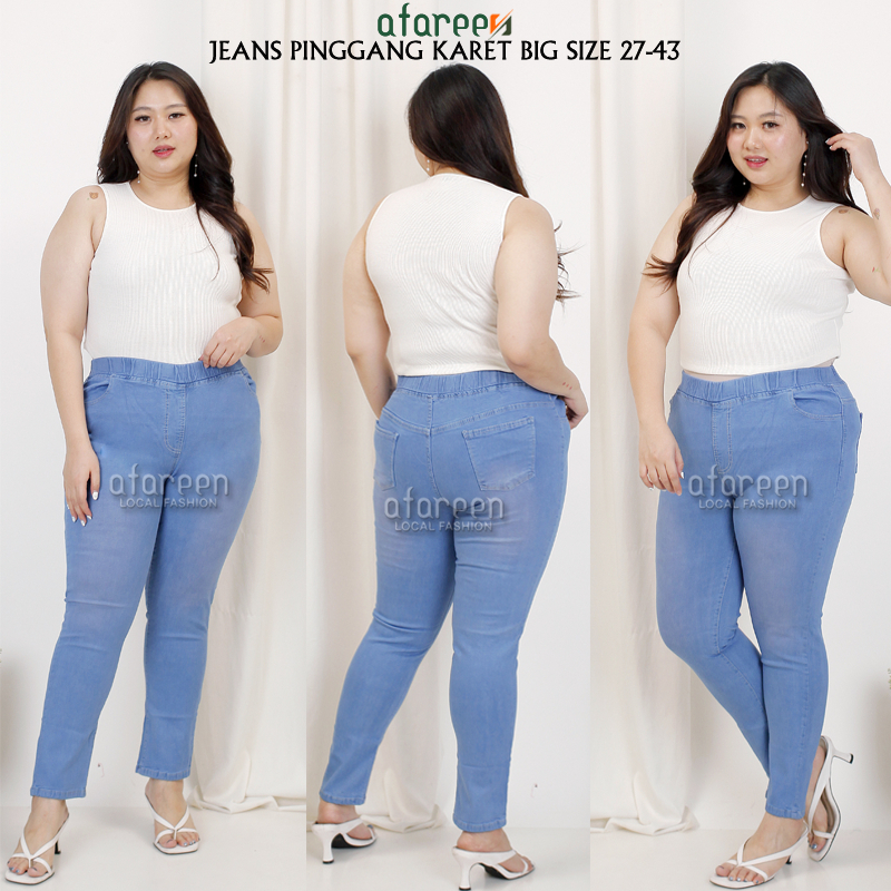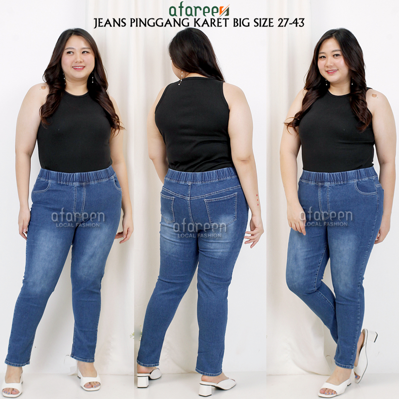 AFAREEN - Celana Jeans Wanita Legging Jeans Jumbo Jeans Skinny Big Size Jegging Jeans Size 27-43