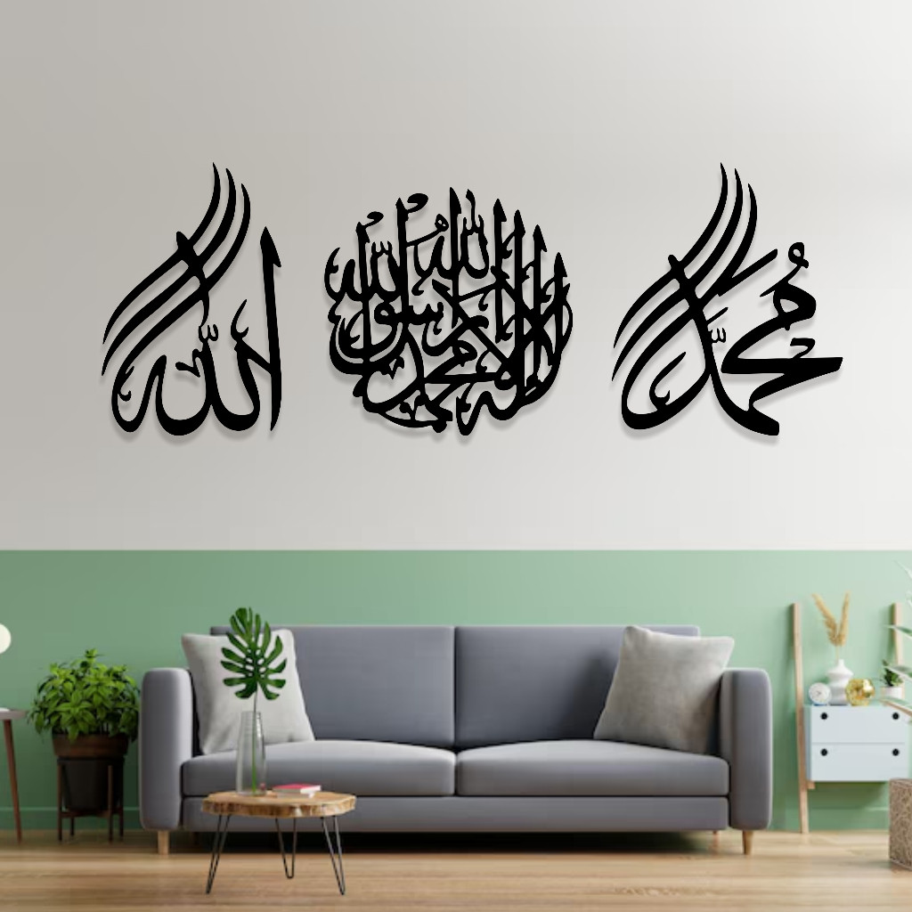 Zalina Craft Hiasan Dinding Kaligrafi Aesthetic Allah Muhammad 1 Set Kalimat Tauhid dan Lafadz Asma Allah Muhammad 40CM