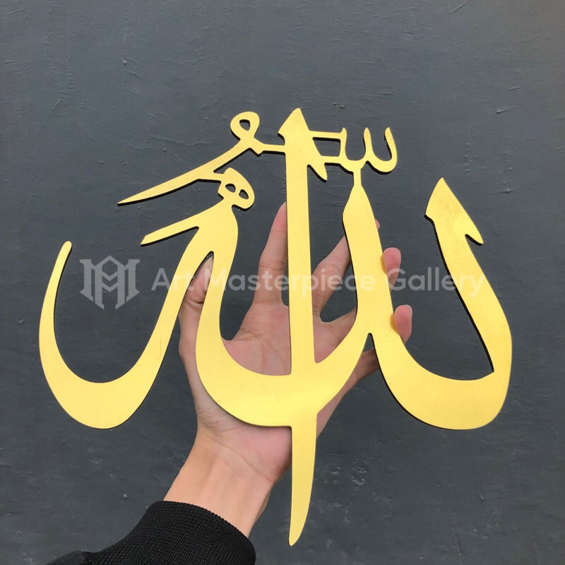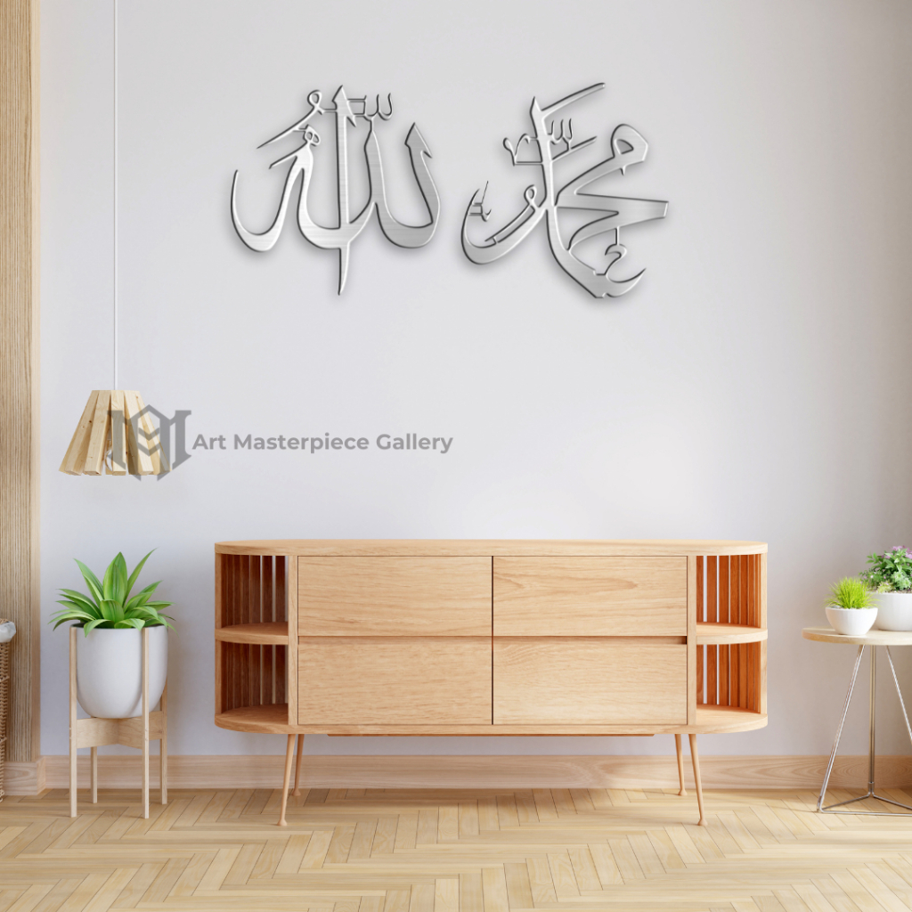 1Set Hiasan Kaligrafi Allah dan Muhammad A1 ACP Mirror Dekorasi Dinding R Keluarga Musholla
