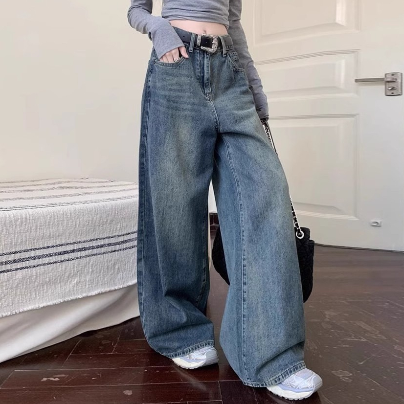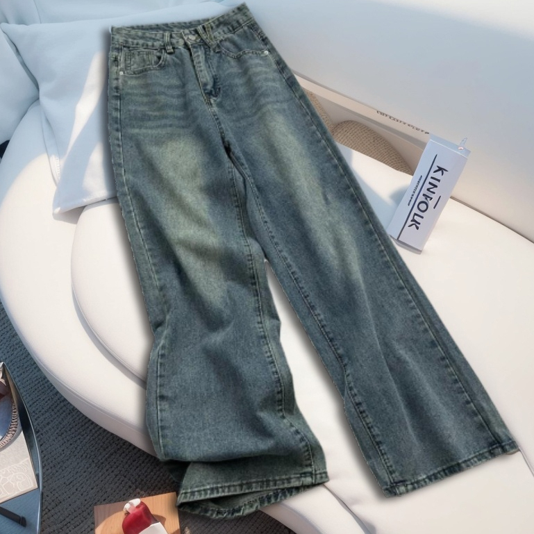 S — 6XL Celana Jeans Bigsize Jumbo Jeans High Waist Wanita Celana Denim Panjang Pinggang Karet Baggy Pants Celana Cutbray