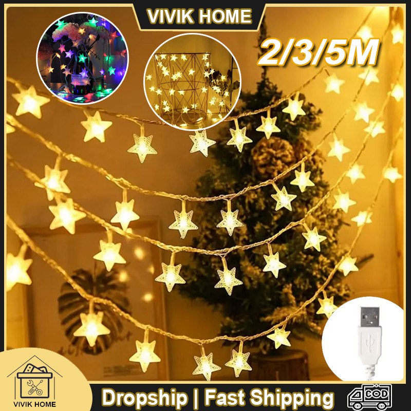 5M Lampu Senar Ramadhan Lampu Tumblr Natal Bentuk Bintang Dekorasi Rumah Ran Star String Lights