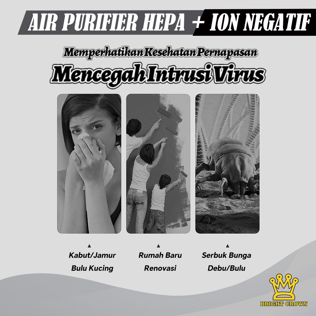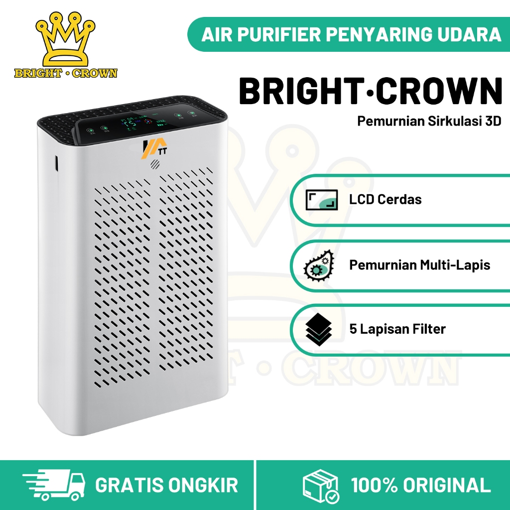 YATT by Bright Crown Air Purifier HEPA+Ion Negative LCD Smart Touch Pembersih Udara Sterilizer Debu