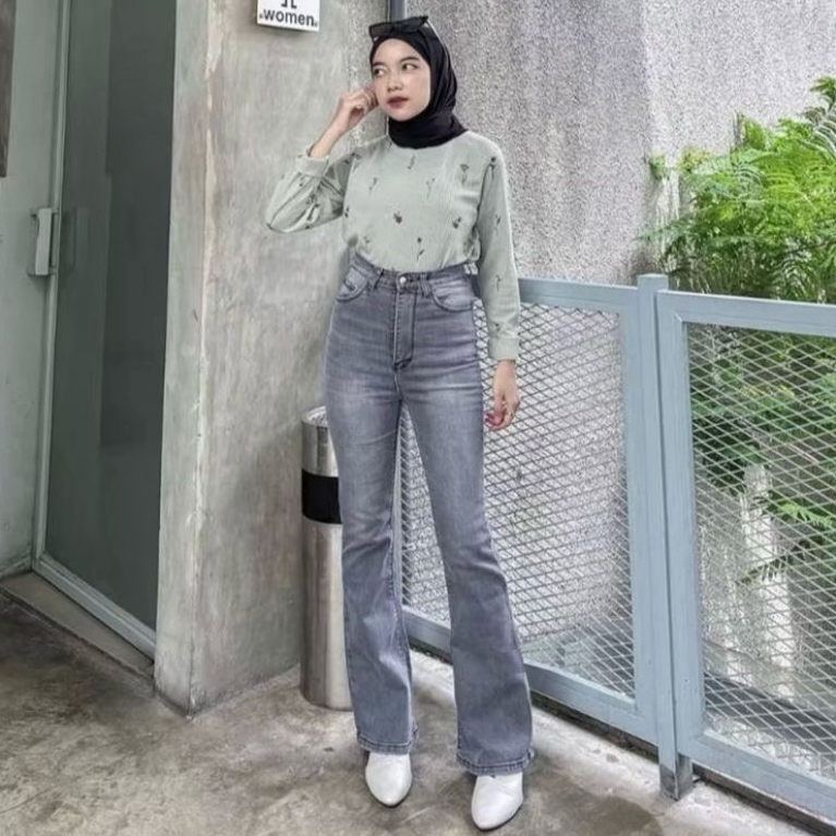 Highwaist Cutbray Jeans Retro 114 - Celana Jeans Cutbray Wanita Super Premium