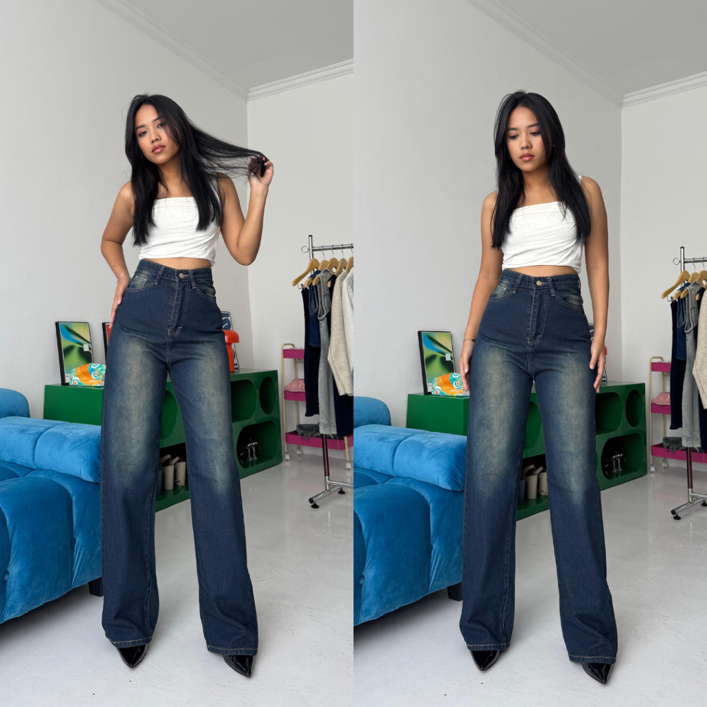 LADOUCE - Mary Ultra High Waist Straight Jeans Celana Panjang Wanita