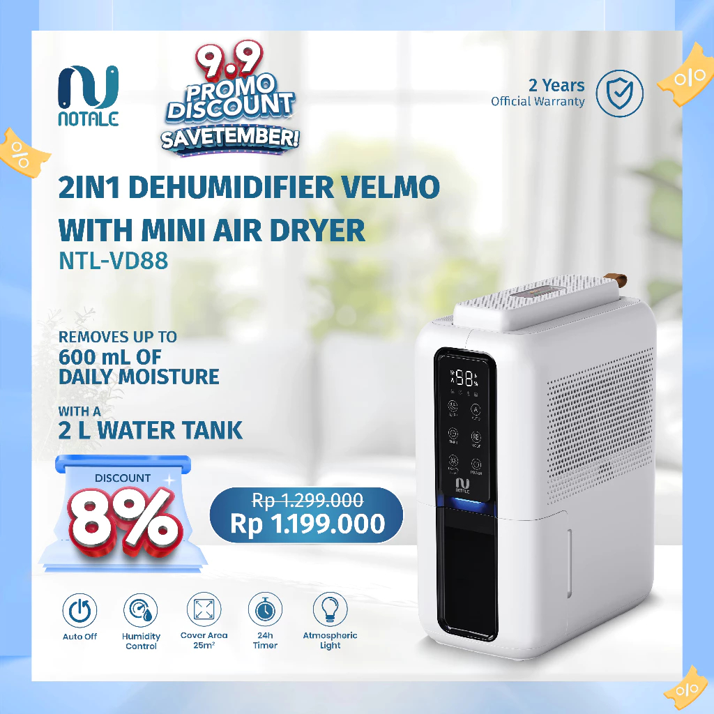 Notale Dehumidifier Velmo 2IN1 Penghilang Kelembaban Penyaring Udara multifungsi