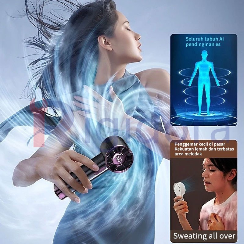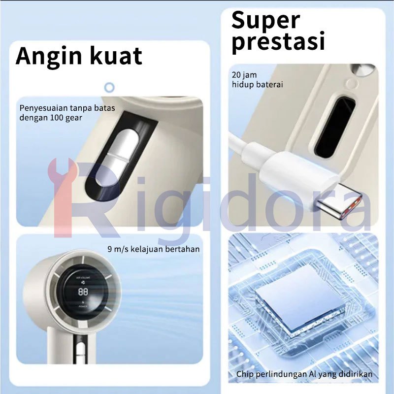 Rigidora High speed Portable Handheld Fan Mini kipas Strong Wind 100 Gear Wind Speed kipas angin Digital Display Adjustable Turbo kipas tangan untuk olahraga luar ran dan pendinginan cepat 17000Rpm