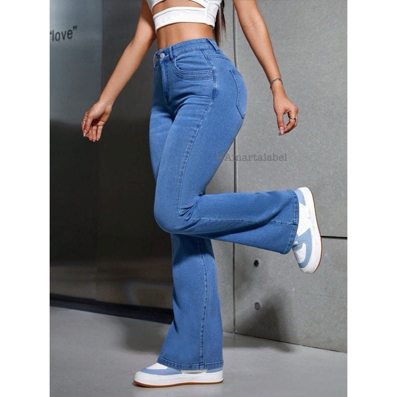 Amartalabel - Celana cutbray jeans wanita import celana jeans stretch wanita High Panjang Keren Vintage Waist