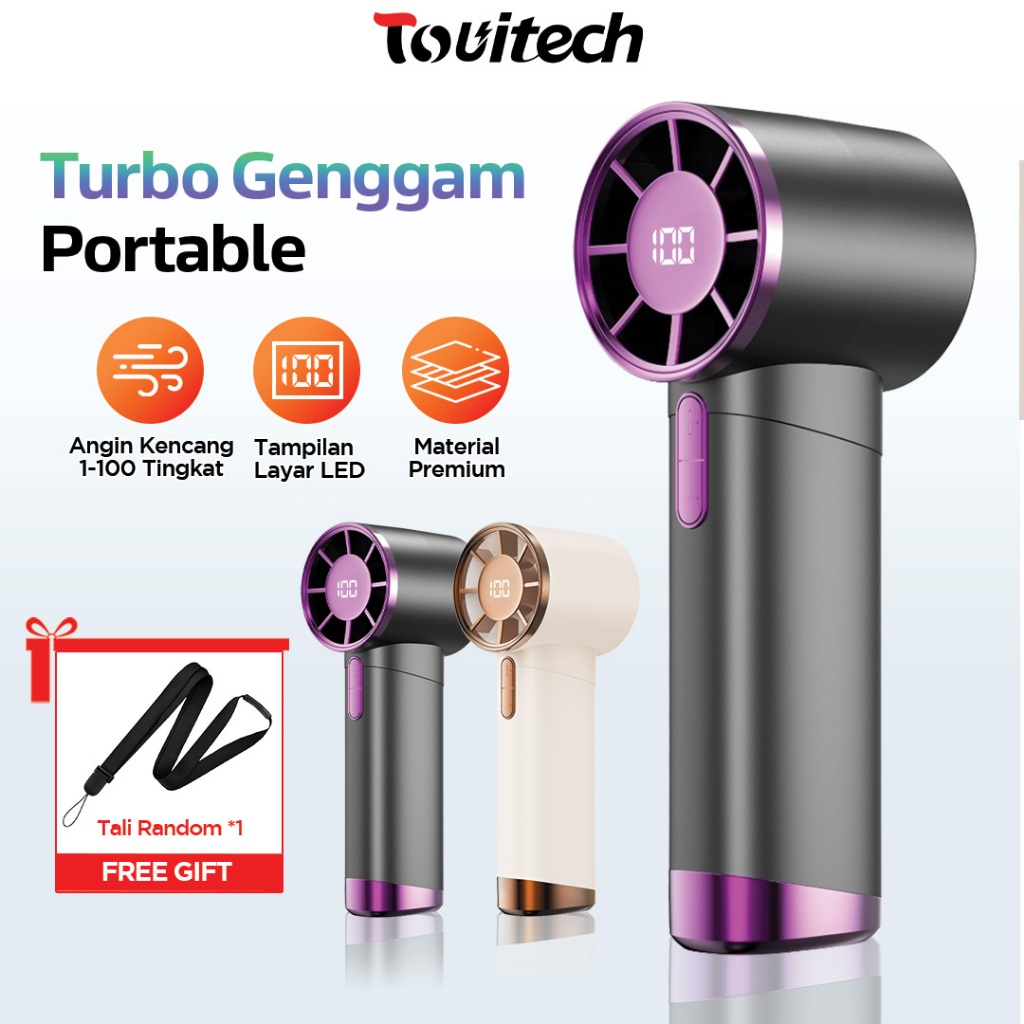 Kipas Angin Portable Turbo High Speed LED Digital Mini Fan Tangan Genggam USB 100gear MF06