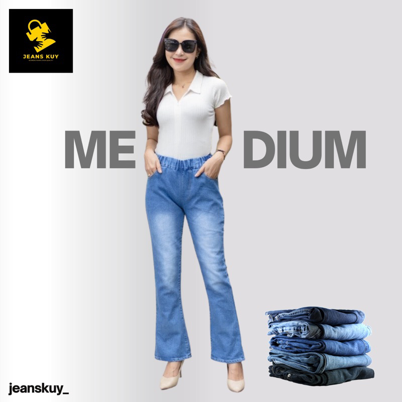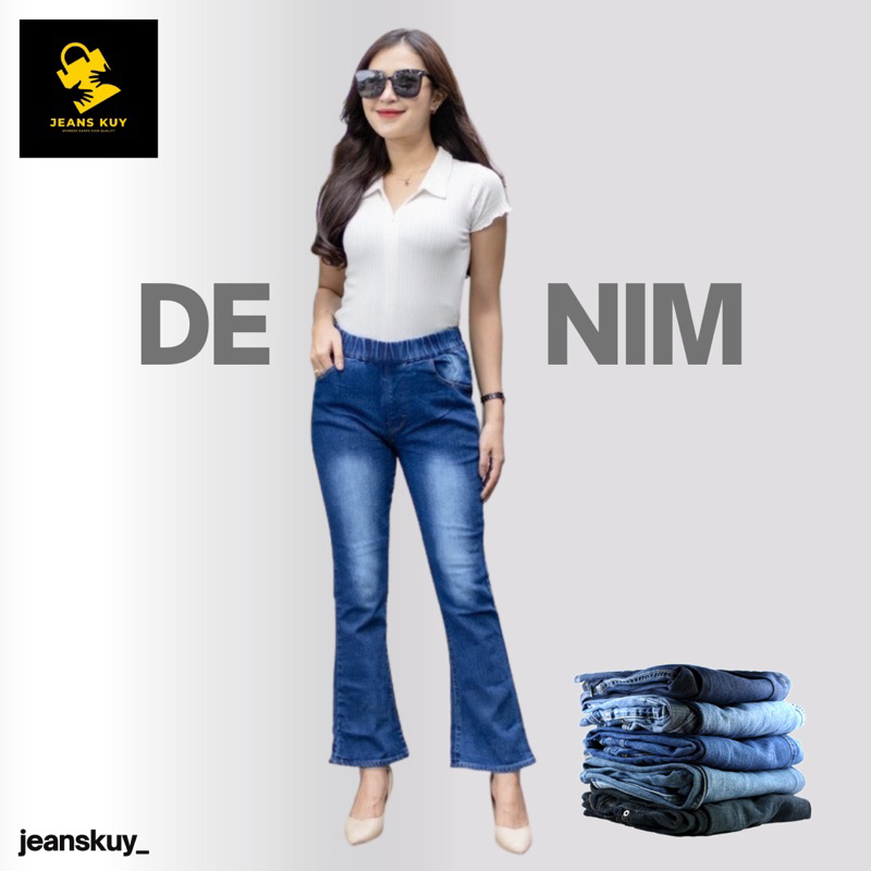 Jeanskuy - Celana Jeans Wanita Cutbray Pinggang Karet