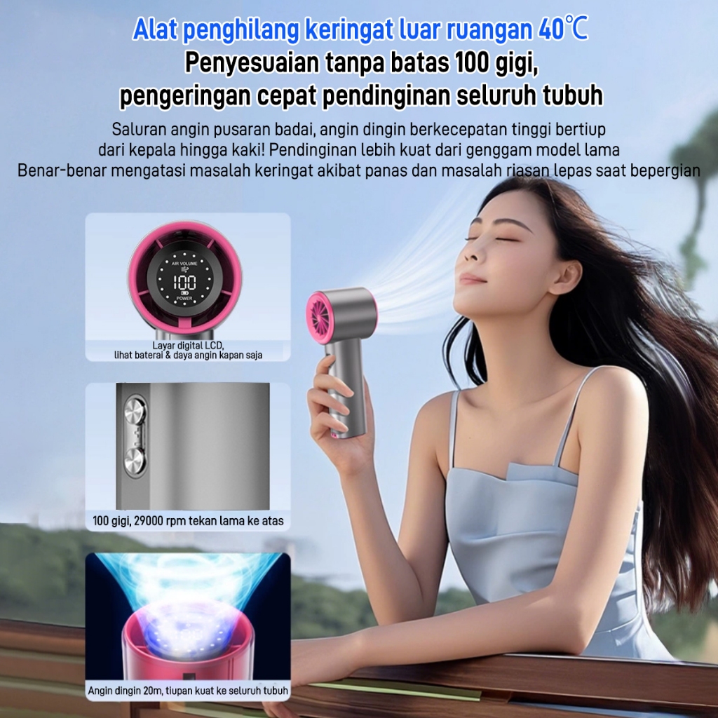 DL High speed Portable Handheld Fan 4000MAH Mini kipas Strong Wind 100 Gear Wind Speed kipas angin Digital Display Adjustable Turbo kipas tangan untuk olahraga luar ran dan pendinginan cepat