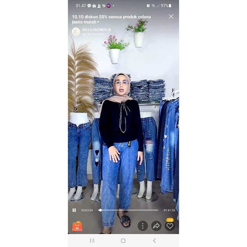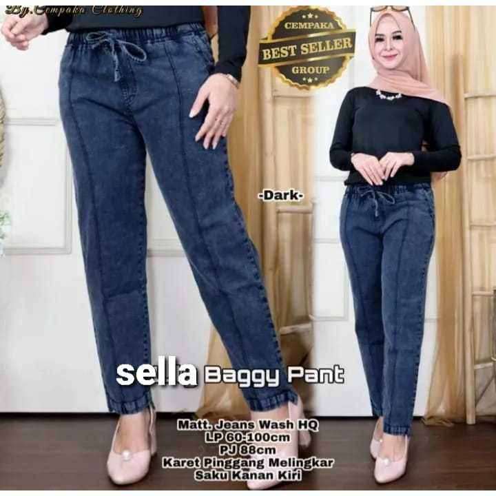 sella celana baggy pants jeans snow biru standar dan jumbo celana jeans wanita motif terbaru
